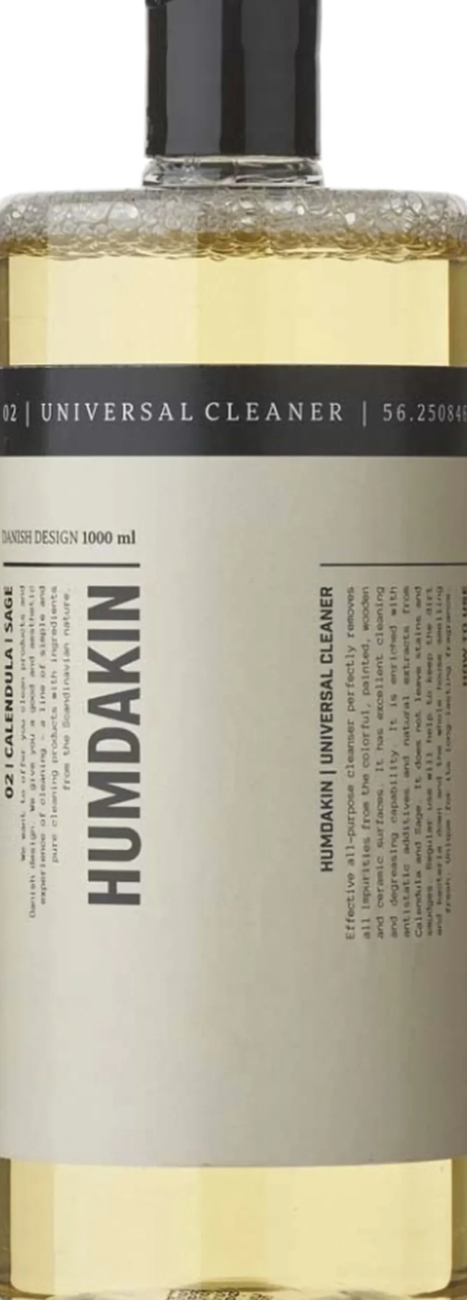 UNIVERSAL CLEANER Calendula & Salvia 1000 ml.This is an effective universal cleaner that perfectly removes impurities from surfaces. It can be used on all surfaces that tolerate water, such as painted, wooden and ceramic surfaces.The detergent is enriched with antistatic additives and natural extracts from sea buckthorn and salvia for a gentler cleaning experience. Use the Universal Cleaner regularly to keep the bacterial numbers low and your home clean and pleasant-smelling.Use the Universal Cleaner with our HUMDAKIN Spray Bottle for easy daily cleaning. Add a small teaspoon of the Universal Cleaner to 500 ml of water, shake the spray bottle and you are ready to spray and clean! Wipe with a damp dish cloth.Tip- Use the universal cleaner for washing your floors! Prepare a bucket of the mixture as explained below and a use a clean floor cloth to wipe the floors with. Follow up with a dry tea towel to ensure all excess water is removed. Using the universal cleaner on your floors will leave a lovely, clean scent of sea buckthorn in your home. DIRECTIONS FOR USE This product is a concentrate. Recommended dosage- add 30 ml (two tablespoons) of Universal Cleaner to five liters of moderately warm water. When dosing the detergent, think about the environment – do not overuse. The correct dosage will reduce the environmental impact.The HUMDAKIN universal cleaner is pH neutral and without any harsh chemicals, so it can be used in all rooms – even the kids’ rooms.- Do not mix different cleaning products. – Use a clean, damp cloth after wiping off to avoid streaks. – Always use warm water for cleaning.HUMDAKINs liquid products are free of parabens, dyes, essential oils, chemical perfumes, endocrine disrupting substances and carcinogens. HUMDAKINs products contain allergy friendly perfume and only mild preservatives. HUMDAKINs liquid products are dermatologically testet.The packaging is made of reusable plastic.Ingredients- less than 5% non-ionic surfactants, preservations agents (2-phenoxyethanol) and perfumes.