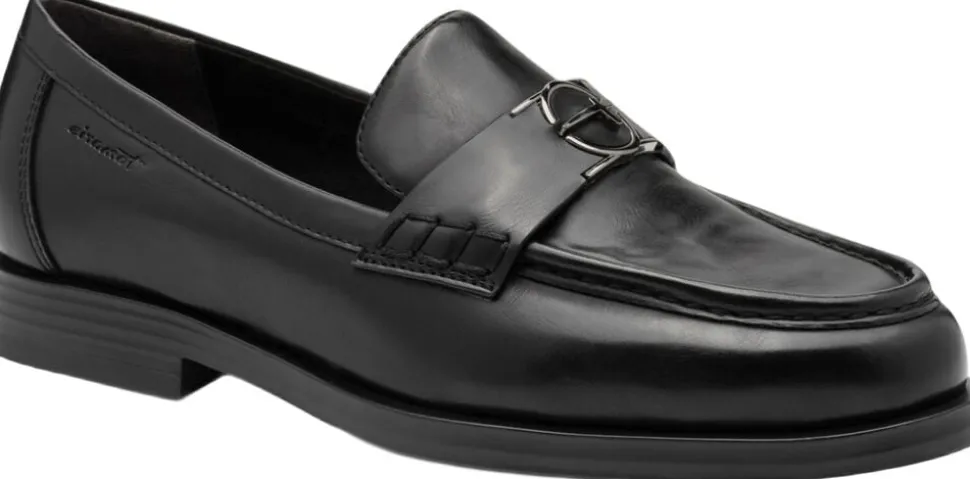 Loafer i polido på en tynd glat sål. Stadig fleksibel. Et gun metal spænde på bæltet over vristen. Touch it effekt i dæksålen