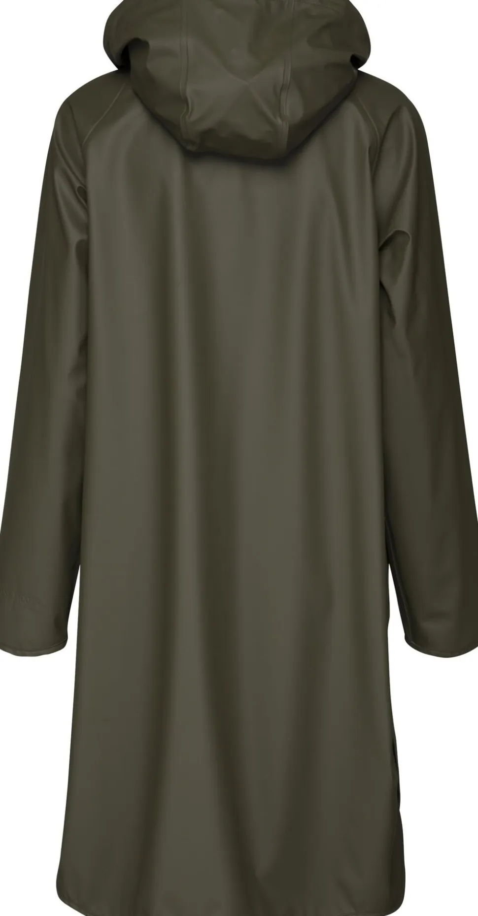 Vandtæt – W/P 5000 MM Gummieret PU-stof med trikot på bagsiden Blød og let kvalitet Sidelommer med klap Justerbare manchetter Stolpelukning med 2-vejs lynlås og skjulte trykknapper Svejsede sømme Aftagelig hætte Slidser i siderne med trykknapper for bedre bevægelighed Denne A-formede regnfrakke fra ILSE JACOBSEN HORNBÆK er en moderne fortolkning af den klassiske regnfrakke med løs pasform og detaljer, der gør den velegnet til brug året rundt. Bare tilføj en trøje eller et quiltet lag under den, når temperaturen falder! Regnfrakken er fremstillet i et let og raffineret, vandfast gummieret PU-materiale med trikot på bagsiden, der gør regnjakken ekstremt behagelig at have på. Regnfrakken har stolpelukning med 2-vejs YKK-lynlås og skjult trykknaplukning. Desuden er alle sømme svejsede for at gøre dem 100% vandfaste, så du ikke behøver at bekymre dig om, at der trænger vand ind, eller at du bliver våd. Ikke desto mindre er RAIN71 meget mere end bare en regnfrakke. Denne model har en aftagelig hætte, der er fastgjort med en vandfast strop i kunstlæder, to store sidelommer og justerbare manchetter med et lille logo på venstre ærme for perfekt pasform. Frakken er som skabt til regnvejrsdage. Uanset om du går tur, lufter hunden eller er ude at fiske, holder RAIN71 dig tør. Den er desuden ideel til cykelturen, da slidserne i siderne med trykknapper langs siderne muliggør ekstra bevægelse. Du kan vælge mellem to forskellige længder, afhængig af hvor høj du er, og et udvalg af såvel klassiske farver som sæsonfarver. Med RAIN71 kan du altid finde en regnfrakke, der passer til dig og resten af din garderobe. Materialer: 100% polyesterjersey med PU-overflade Funktionalitet: W/P 5000 MM Længde foran fra højeste punkt på skulderen: 94 cm Ryglængde fra højeste punkt på skulderen: 103 cm (str. 38)