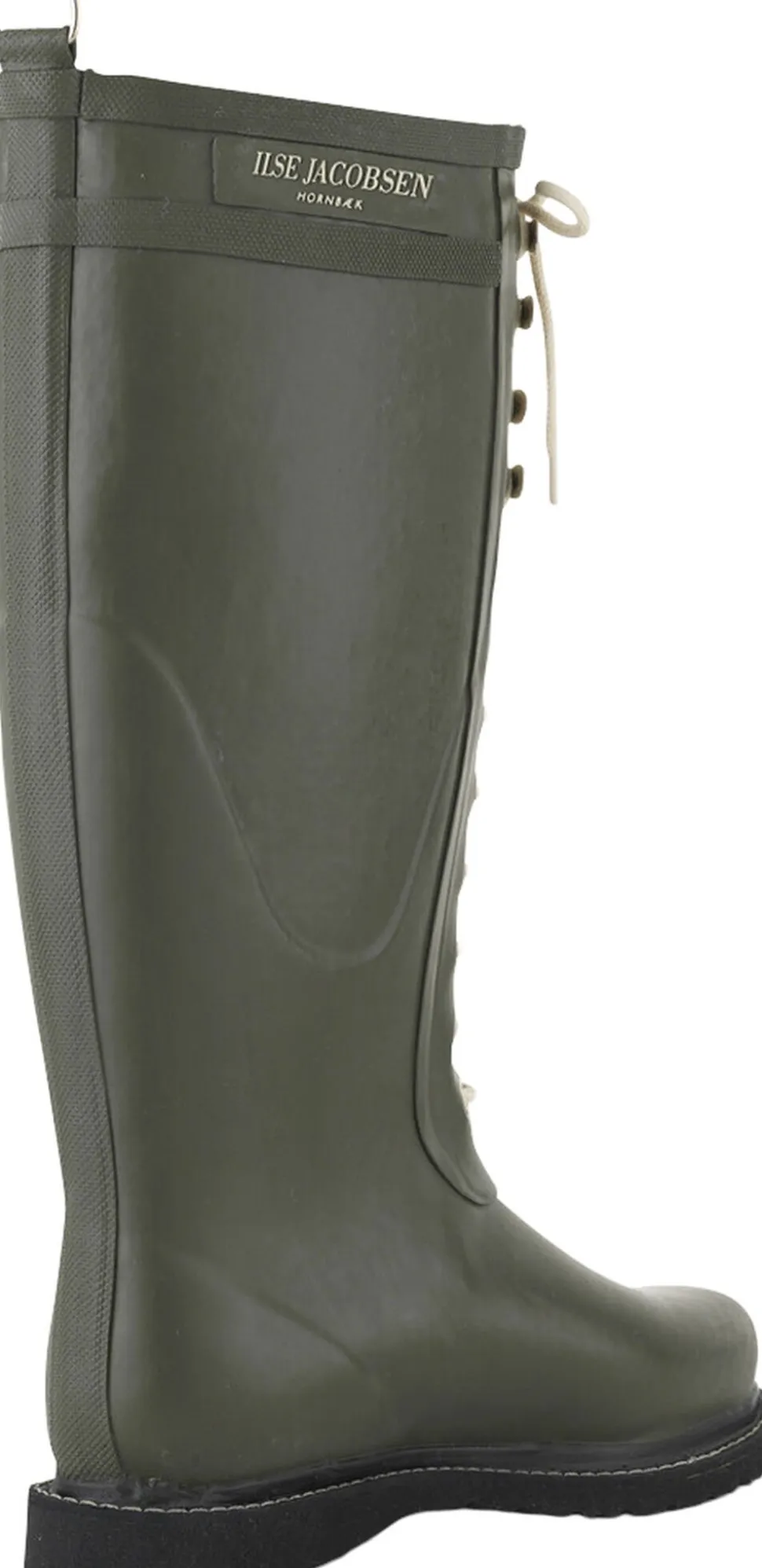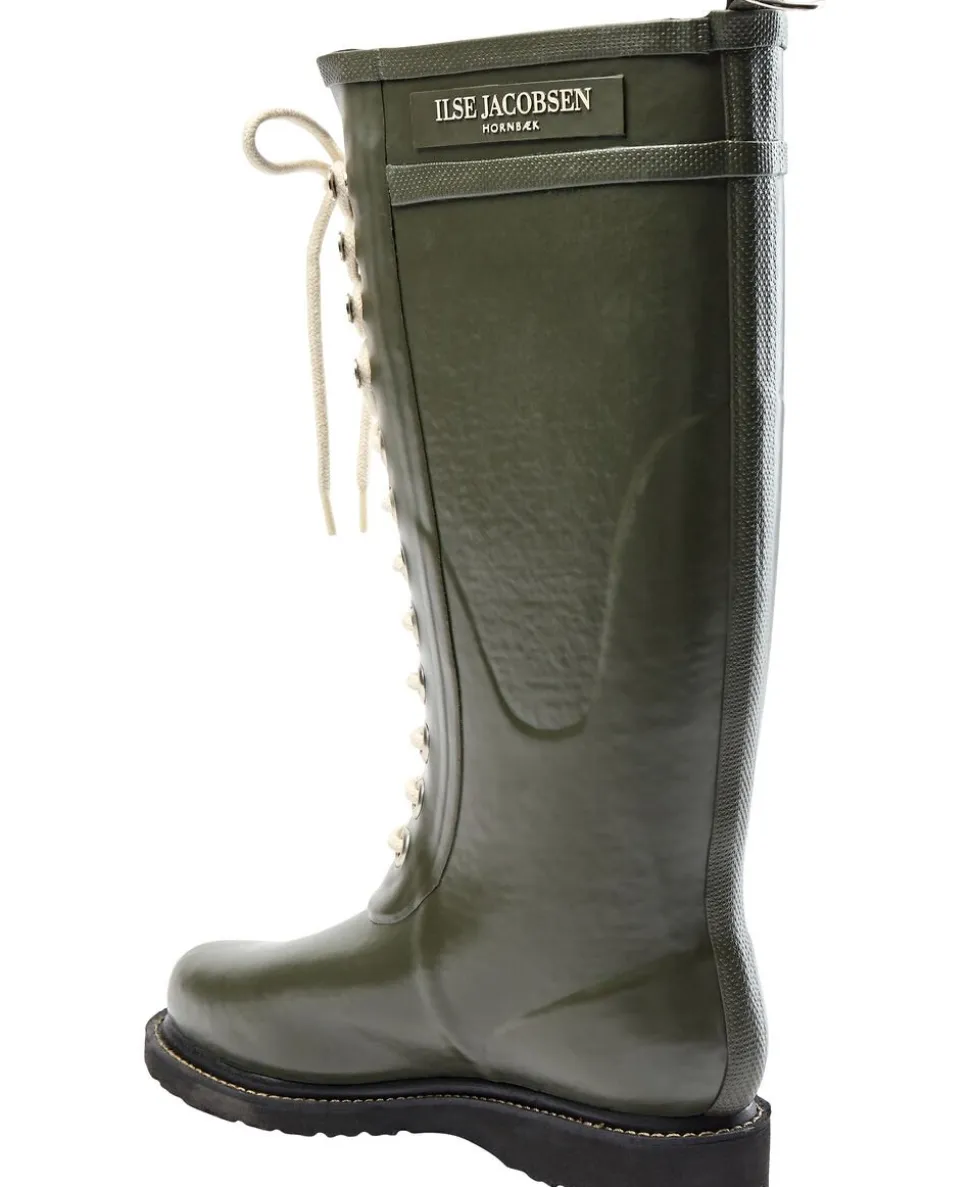 The iconic laced rubber boots by Ilse Jacobsen. These knee length rain boots features a decorative D-ring at center back and logo on the shaft. These wellingtons are made of sustainably harvested natural rubber and have been cut by hand. This material can withstand temperatures down to -20 degrees Celsius. The rubber composition is 80% pure, natural rubber and 20% secret formula. Entirely PVC-free, our boots contain no animal by-products. If not treated regularly, natural rubber will develop a white surface over the years. This is simply because the rubber will lose its essential oil. To keep your boots in great condition for many years to come, we recommend that you treat them once a month with our oil. New laces are available in several colors.