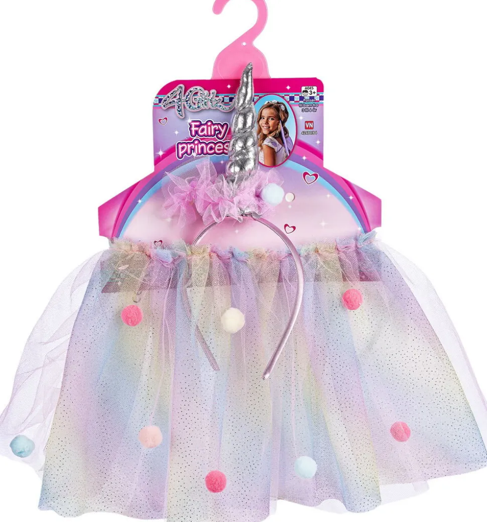 4-Girlz skørt og hårbøjle med enhjørningehorn. Str. 3-6 år.
