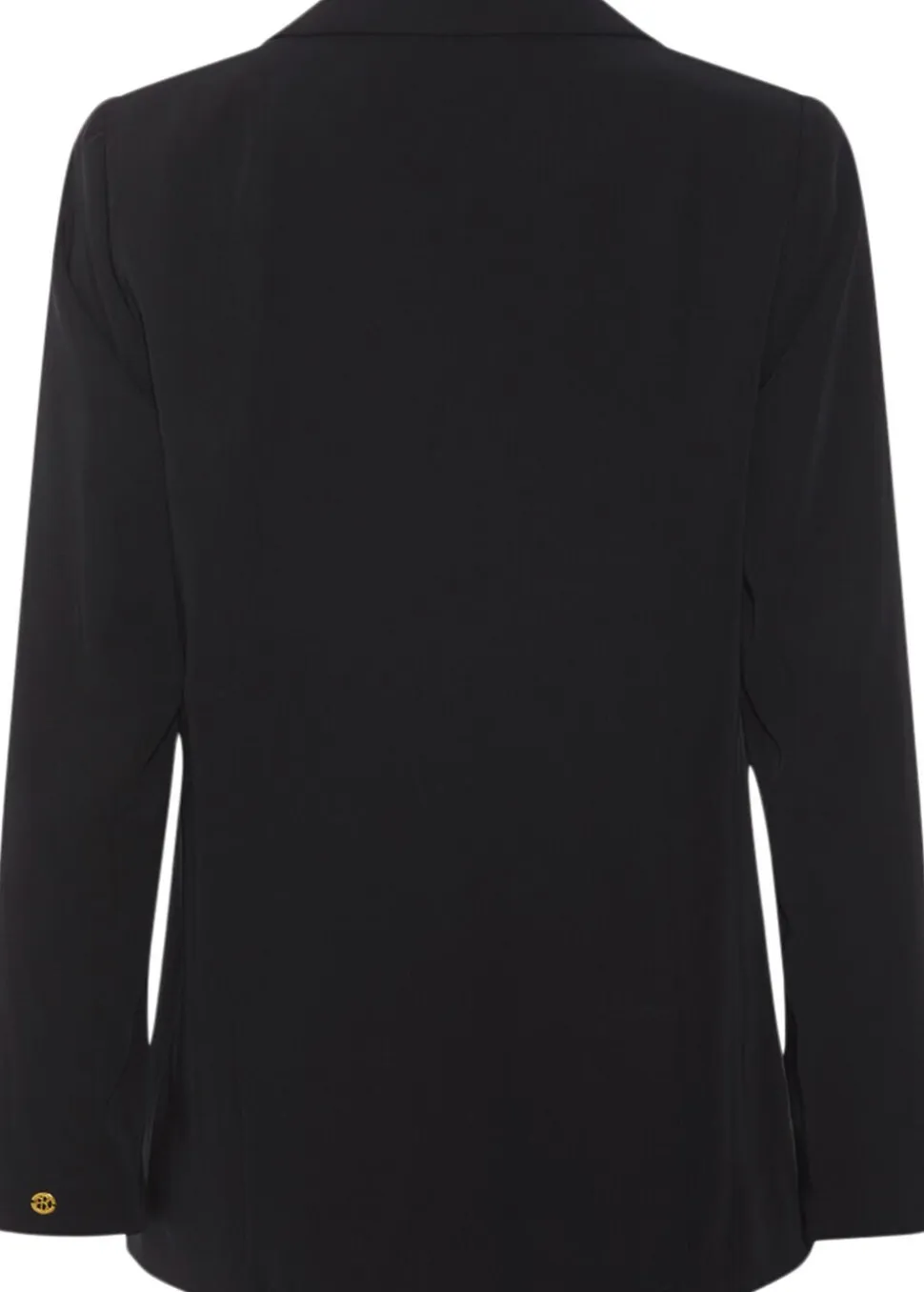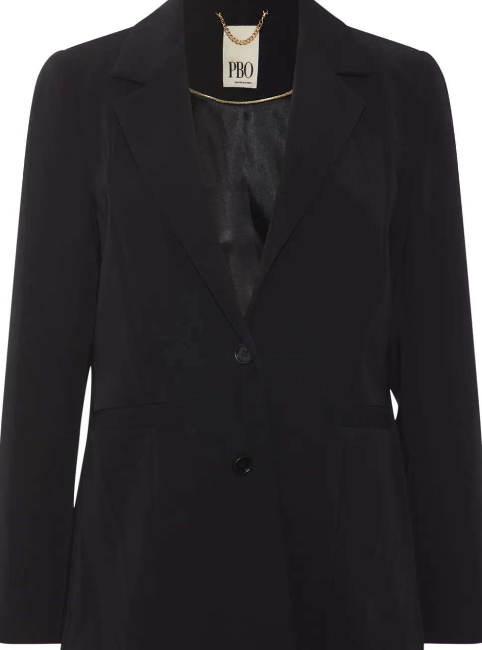 Klassisk blazer med to knap lukning. Paspel lommer. Afsluttet med for og guldkant indvendigt.