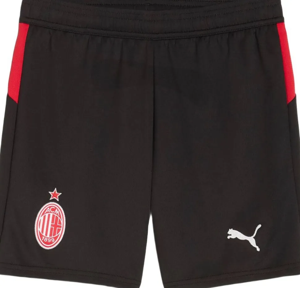 AC Milan 25/26 Hjemmebaneshorts fra Puma kombinerer autentisk stadionstil med avanceret performance. Fremstillet i 100% genanvendt polyester med Pumas dryCELL teknologi, sikrer de effektiv fugttransport, så du forbliver tør og komfortabel under træning eller kamp. Shortsene har elastisk talje med justerbar snøre for perfekt pasform og bevægelsesfrihed. Det officielle AC Milan-logo med broderet stjerne pryder højre ben, mens det ikoniske Puma-logo er på venstre. Ideelle til fans og spillere, der ønsker funktionalitet og stil i ét produkt. Gør dig klar til sæsonen med disse lette, slidstærke hjemmebaneshorts.