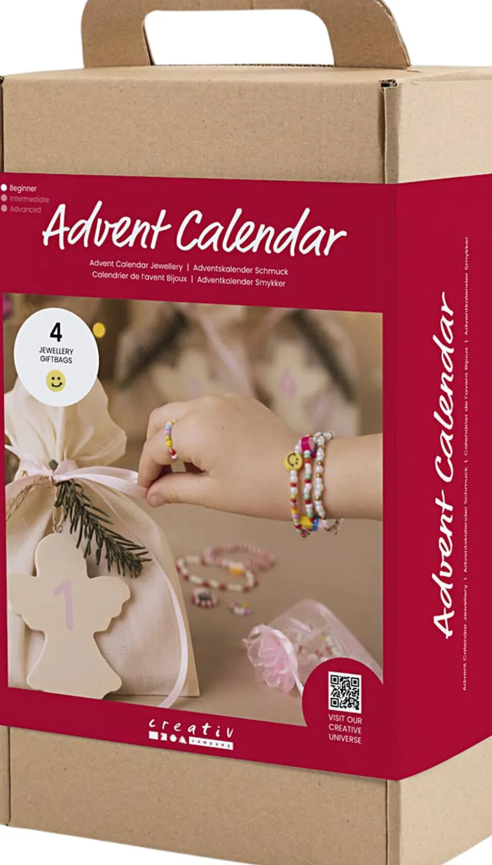 Årets adventskalender til smykkeentusiasten. Glæd dig til hver søndag i advent, hvor et nyt smykkeprojekt venter på dig. Indeholder alle de materialer du skal bruge, og al den vejledning du behøver. For børn og voksne er adventskalendere og julekalendere noget af det bedste ved julen. Det skaber en forventningsglæde i december og de fleste elsker glæden ved de små overraskelser, som venter på en. En julekalender er nemlig en påmindelse om, at julen nærmer sig, og en adventskalender er med til at gøre hver søndag i advent ekstra særlig. Er du vild med hjemmelavede perlesmykker, er denne adventskalender perfekt. Kalenderen består af fire gaveposer én til hver søndag i advent og med et nyt smykkeprojekt i hver. Selvom indholdet er en overraskelse, lover vi masser af smykkesjov i december.