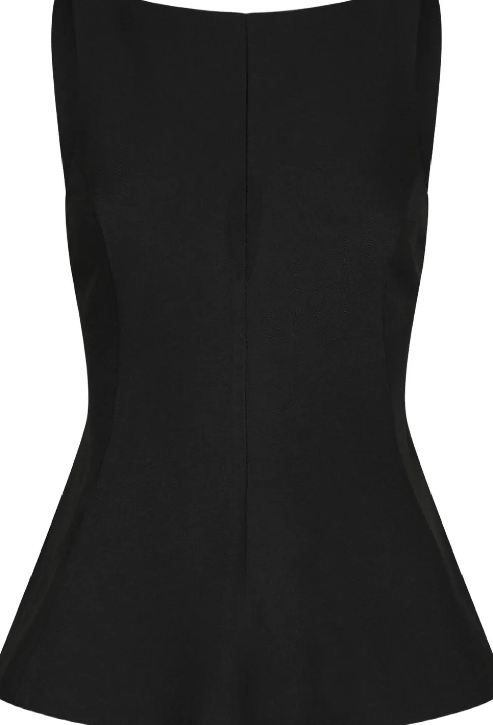 Ærmeløs top med åben ryg. Toppen har en rund halsudskæring, vidde i bunden og bindes på ryggen. Den har en almindelig pasform. Modellen er iført størrelse 36.