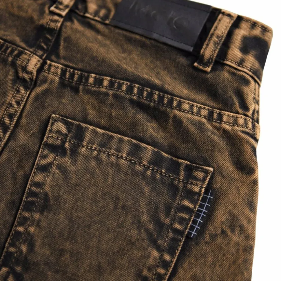 Disse denimjeans fra Molo er lavet i økologisk bomuld med en sort og rød vask. Bukserne har 5 lommer og en bred pasform, inspireret af skatermiljøet. Livvidden kan justeres med en indvendig elastik for optimal pasform til alle børn. Størrelser 92-134 har trykknap, mens størrelser 140-176 har en almindelig jeansknap.