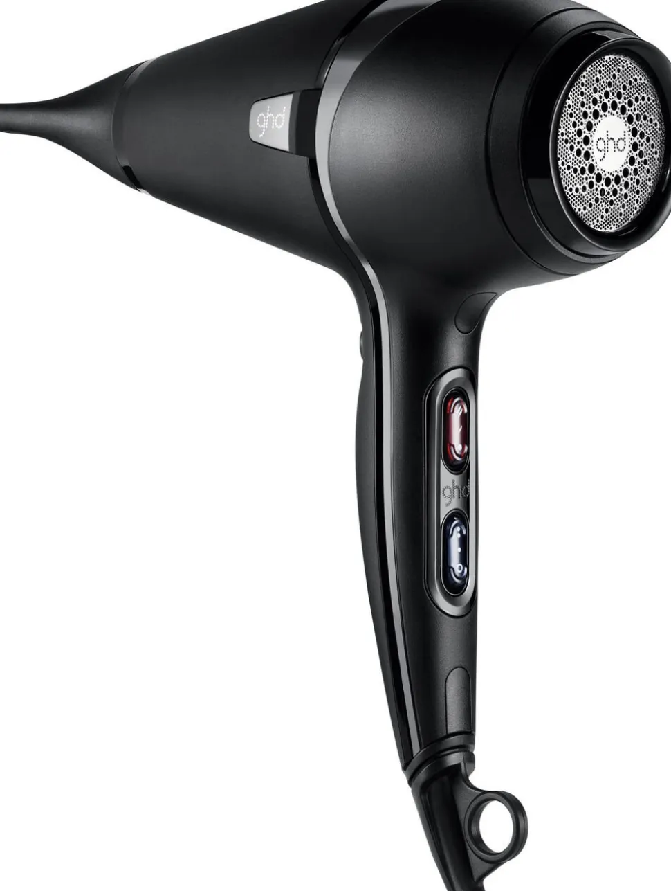 Ghd air føntørreren er udstyret med en kraftfuld professionel motor, der leverer en exceptionel hurtig tørretid og anvender ion-teknologi til at indkapsle fugten i hårstrået, hvilket gør håret silkeblødt og glansfuldt samt reducerer krus. Variabel hastigheds- og varmekontrol, 2 fønnæb, cool shot knap samt ergonomisk design for nem håndtering for både højre- og venstrehåndede brugere. En 3 meter lang ledning giver stor bevægelsesfrihed under føntørringen.