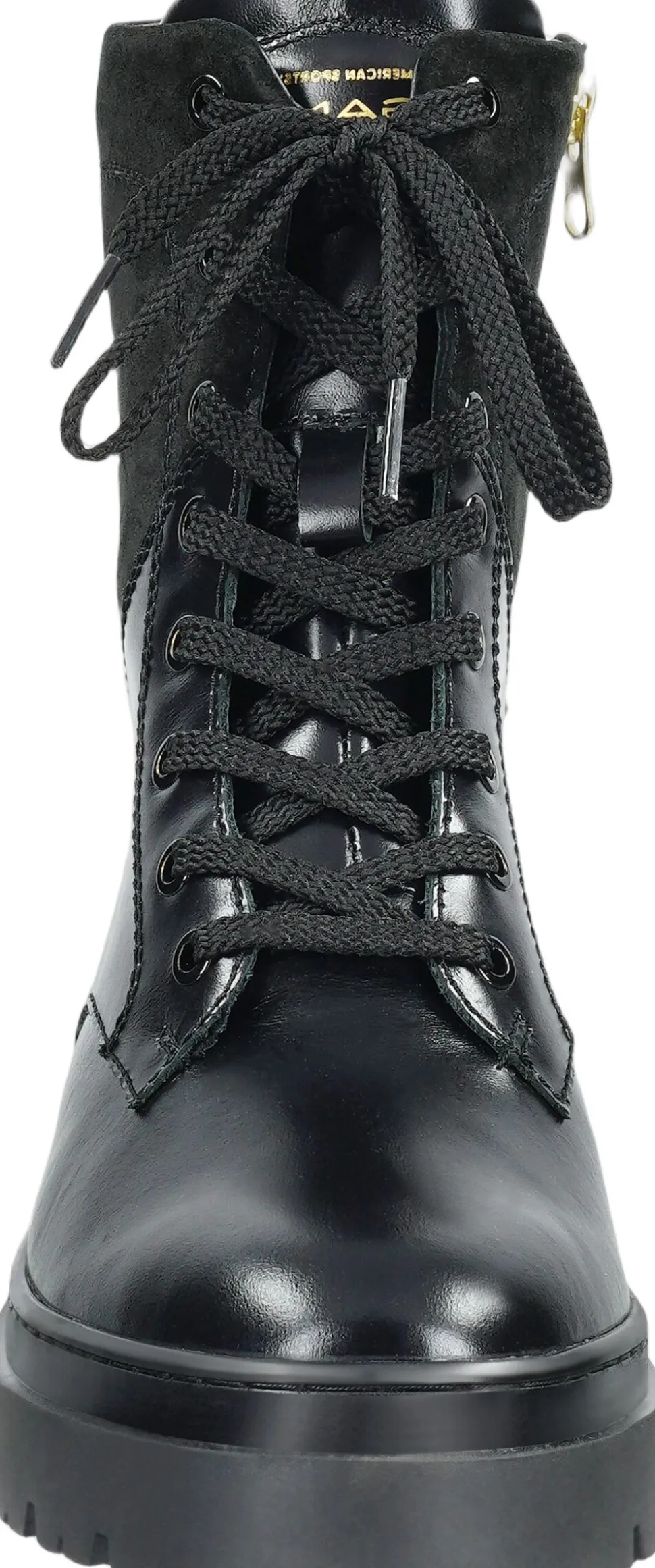 High Fashion Chelsea-støvle med en superlet, profileret gummisål, smalt skaft og snørebånd. Det øverste materiale er læder af høj kvalitet med synlige dekorative syninger