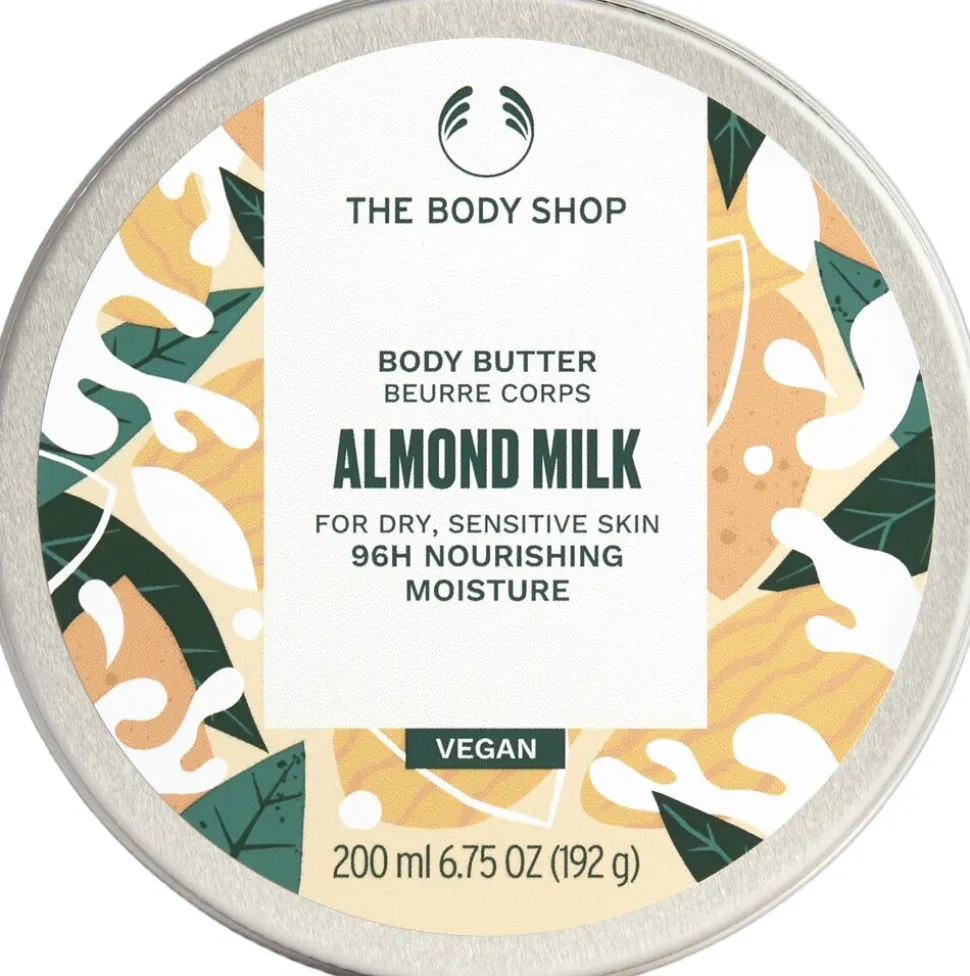 Almond Milk Body Butter fugter huden i hele 96 timer, og 95 % af ingredienserne er af naturlig oprindelse heriblandt tre Community Fair Trade-ingredienser: mandelmælk fra Spanien, håndlavet sheasmør fra Ghana og sesamolie fra Nicaragua. Perfekt til at pleje tør og følsom hud, så den føles blødere og mere smidig og får en naturlig, smuk glød.