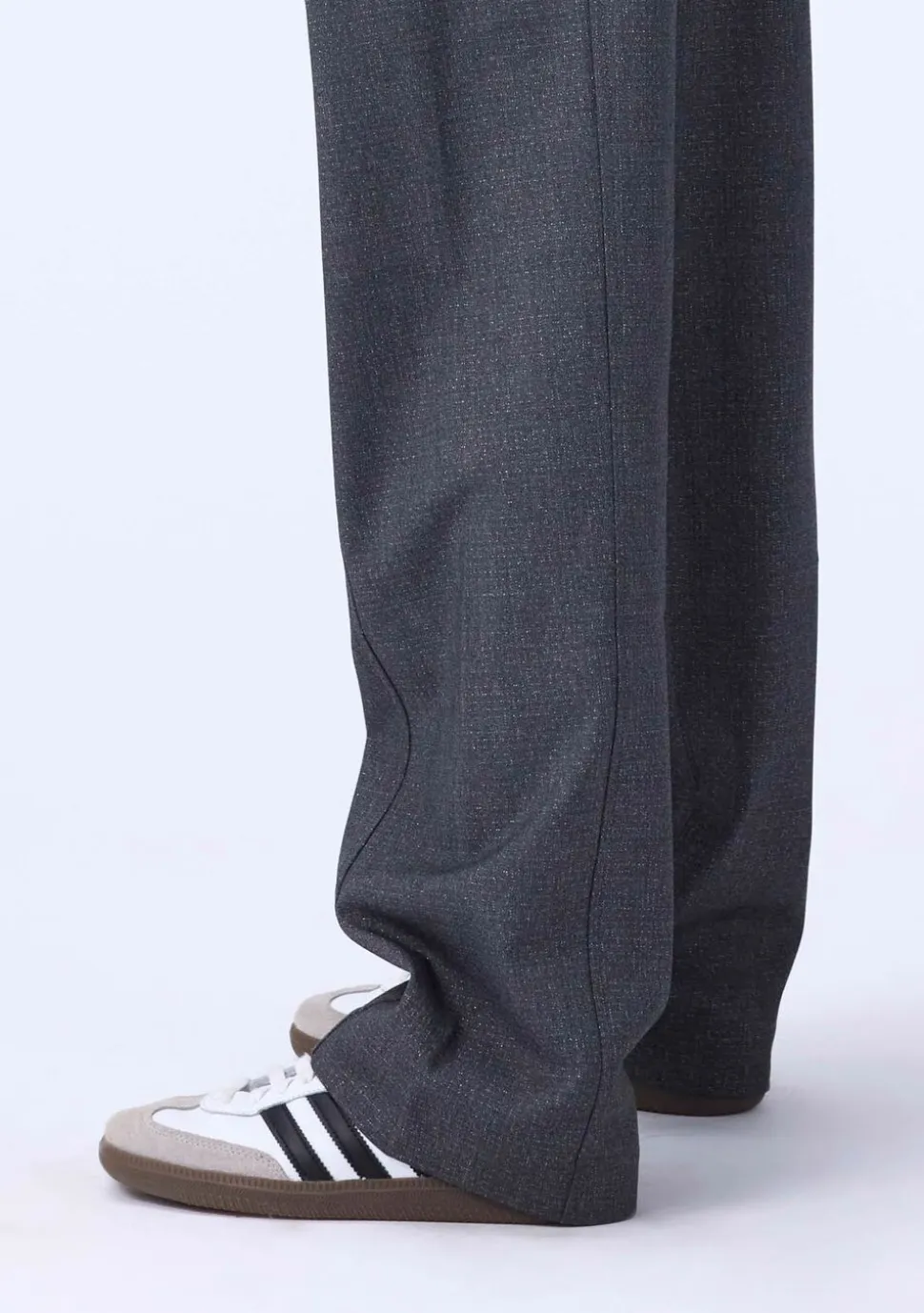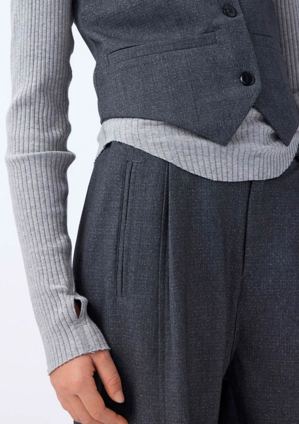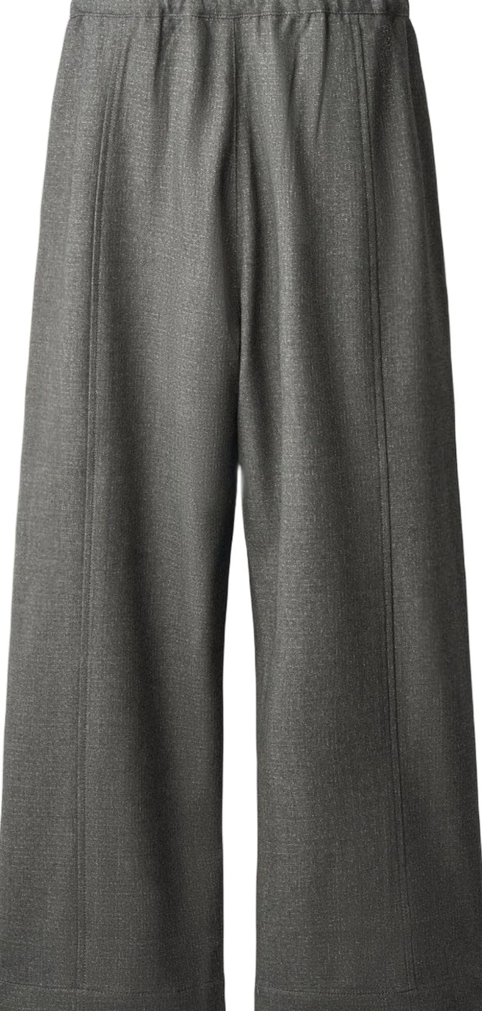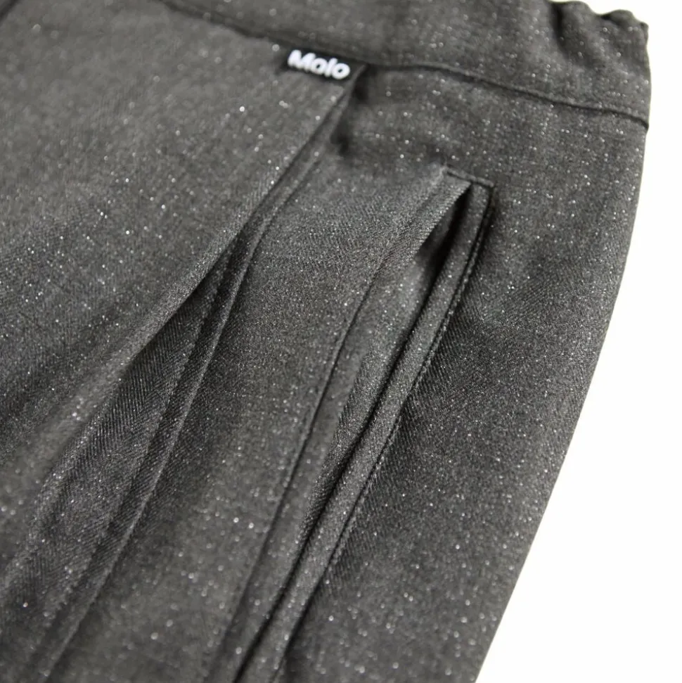 Disse grå flannelbukser fra Molo har en løs pasform, er let højtaljede med brede ben og læg, hvilket skaber en flot silhuet. De har to sidelommer og en flot syning ned langs benene foran og bagpå. Taljen har knap- og lynlåslukning samt en indvendig justerbar elastik for en god pasform.