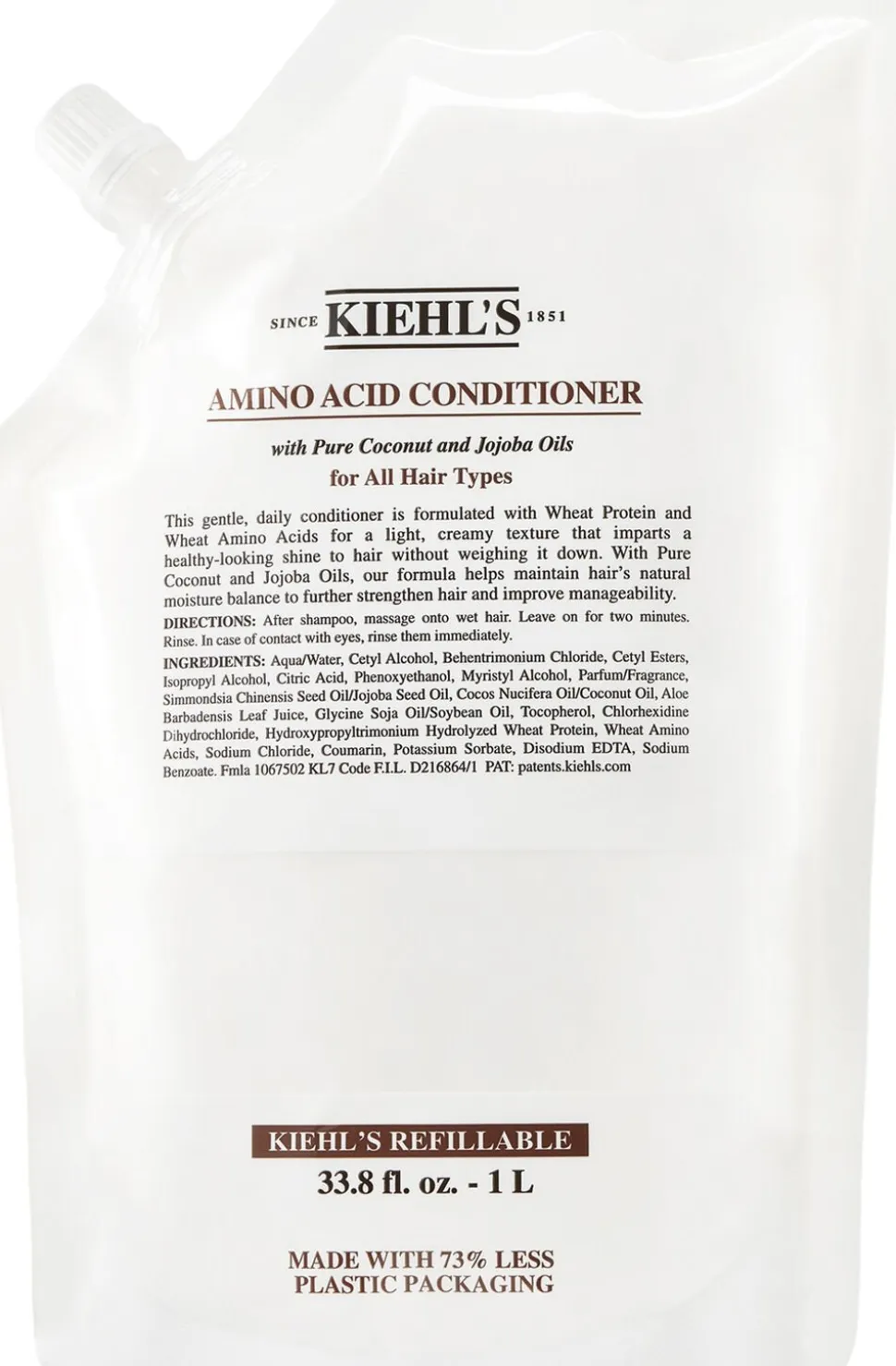 Styrk dit hår med Kiehl’s blødgørende balsam. Den er tilsat ren kokosnøddeolie, jojobaolie og hvedeprotein og har en let, cremet konsistens. Denne milde balsam er formuleret til alle hårtyper og bevarer effektivt hårets fugt, giver glans og hjælper med at forbedre håndterbarheden. Nu i en genopfyldningspose, der bruger 80 % mindre plast.