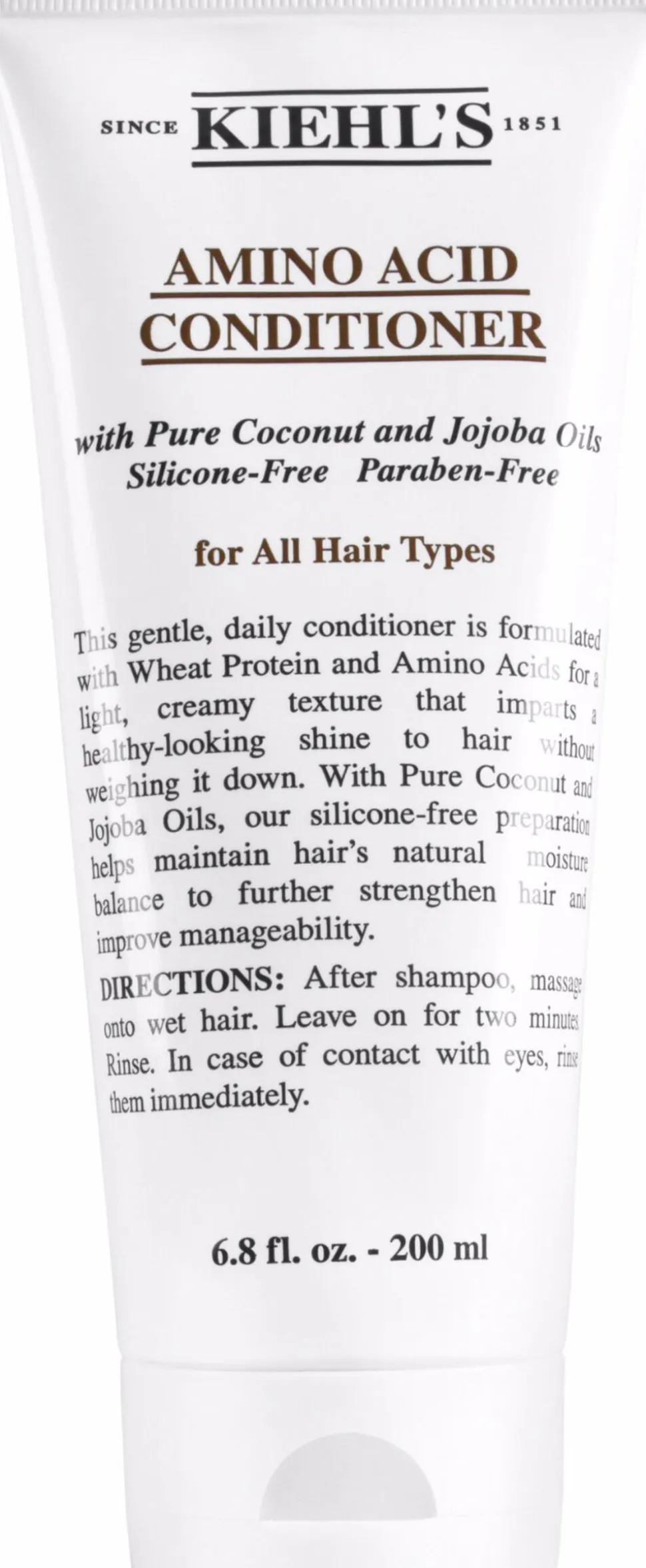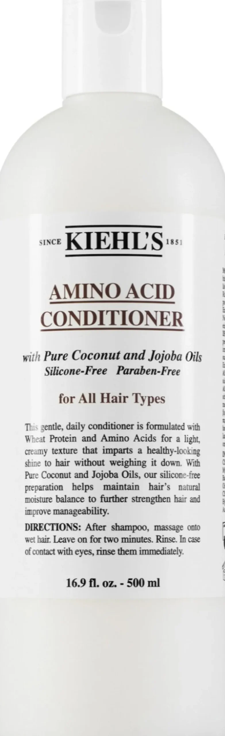 Kiehl’s Amino Acid Conditioner. Velegnet til alle hår- og hovedbunds typer, når man ønsker en mild balsam til daglig brug. Giver et sundt udseende med glans til håret og bevarer hårets naturlige fugtbalance. Denne balsam indeholder hvedeproteiner og aminosyrer, samt kokos- og jojobaolie.