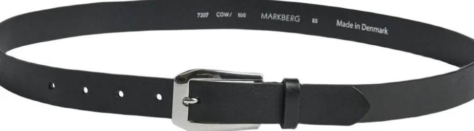 Arcade Belt fra Markberg er i 100% kalveskind og er produceret i Danmark. Det firkantet spænde, men skåret kanter er i metal og er nikkelfri. Bredden er 2,5 cm og fås fra størrelse 85-115 cm.