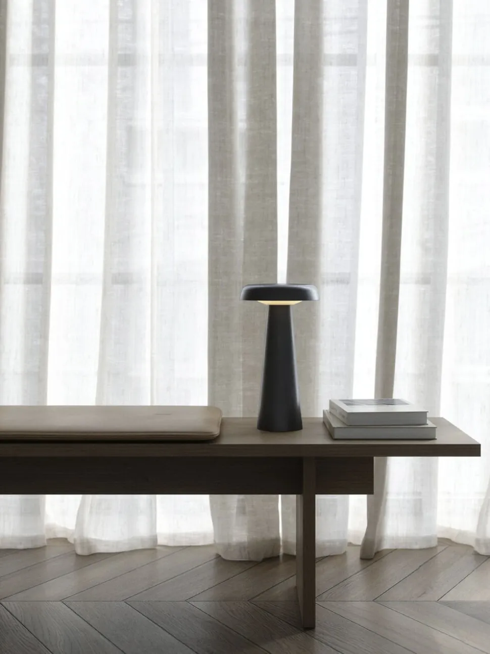 Med Arcello har den danske designduo Bjørn + Balle skabt en elegant bærbar lampe med et behageligt nedadvendt lys. Designet er enkelt, men alligevel fremhævet med en smuk, ensartet anodiseret overflade fra top til bund. Lampen oplades nemt med det medfølgende USB-kabel.