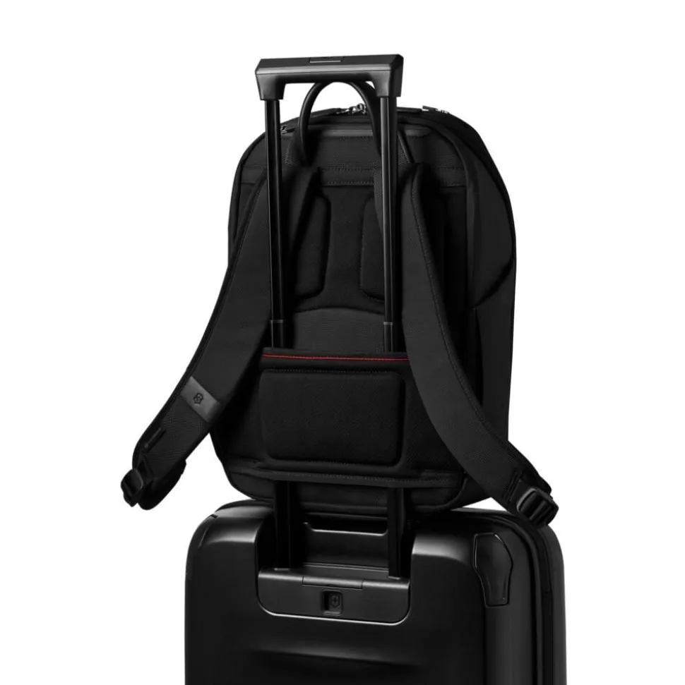 En funktionel og robust rygsæk designet til daglig brug og rejse. Tasken er udstyret med praktiske elastiske sidelommer, der giver sikker opbevaring af vandflasker eller andre genstande med variabel størrelse. På undersiden er der integrerede bundfødder, som reducerer direkte kontakt med snavsede eller fugtige overflader og dermed forlænger materialets levetid. Derudover har rygsækken en dedikeret pass-through-lomme, som gør det muligt at fastgøre tasken stabilt oven på en kufferts teleskophåndtag, hvilket sikrer nem og ergonomisk manøvrering under transport.