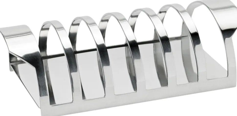 Toast holderen fra Stelton, er en del af ‘Cylinda-Line’ service, som blev skabt af Arne Jacobsen i 1967. Den tidløse toast holder i rustfrit stål har en karakteristisk cylinderform med håndtag som forlængelser til støtterne i hver ende. Et mesterværk af enkel elegance og funktionalitet, som bærer Arne Jacobsens signaturstil og Steltons kvalitetsstandard. Denne toast holder er en ægte designklassiker, der kombinerer tidløs æstetik med praktisk brug og holder sin relevans i generationer.