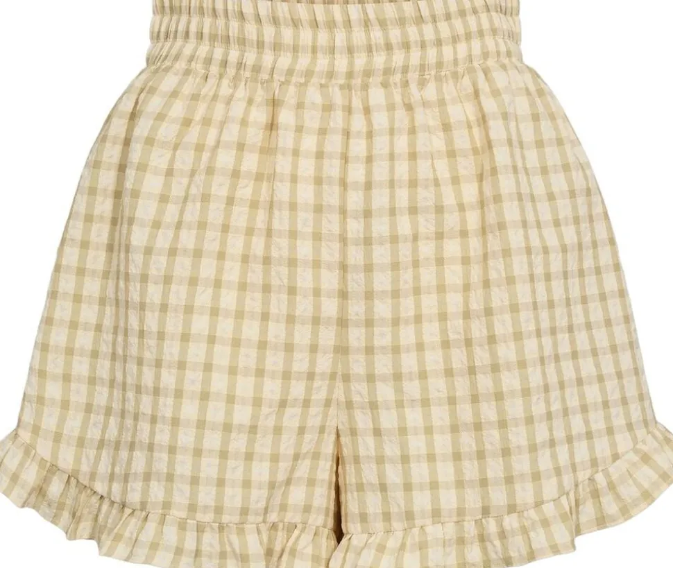 Aulina Shorts er lette shorts med elastisk linning og flæsekant ved sømmen. Shortsene har en afslappet pasform og er lavet af et let, tekstureret stof. Shortsene passer til størrelsen. – Elastisk linning – Flæsekant ved kanten – Let og tekstureret stof