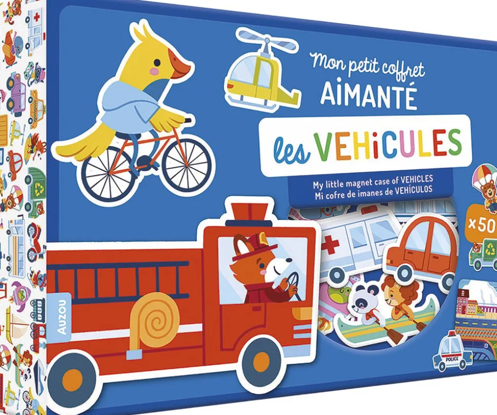 Æsken indeholder 2 baggrundsdekorationer til at bruge sammen med 42 magneter med transportmidler.