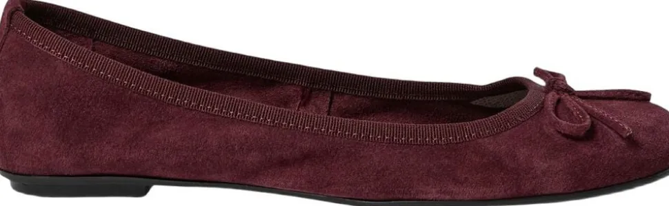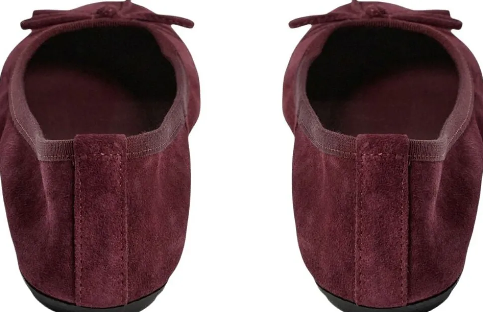 Sød ruskind ballerinasko med sløjfe over vristen. Skoen er designet i 100% læder med gummisål