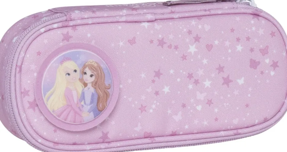 Det ovale penalhus er rummeligt og har en separat sektion til de mest brugte blyanter, og en lomme der lukkes med lynlås. Ydersiden er dekoreret med designs der matcher skoletasken, og penalhuset kommer med en aftagelig velcro button. Leveres uden indhold.