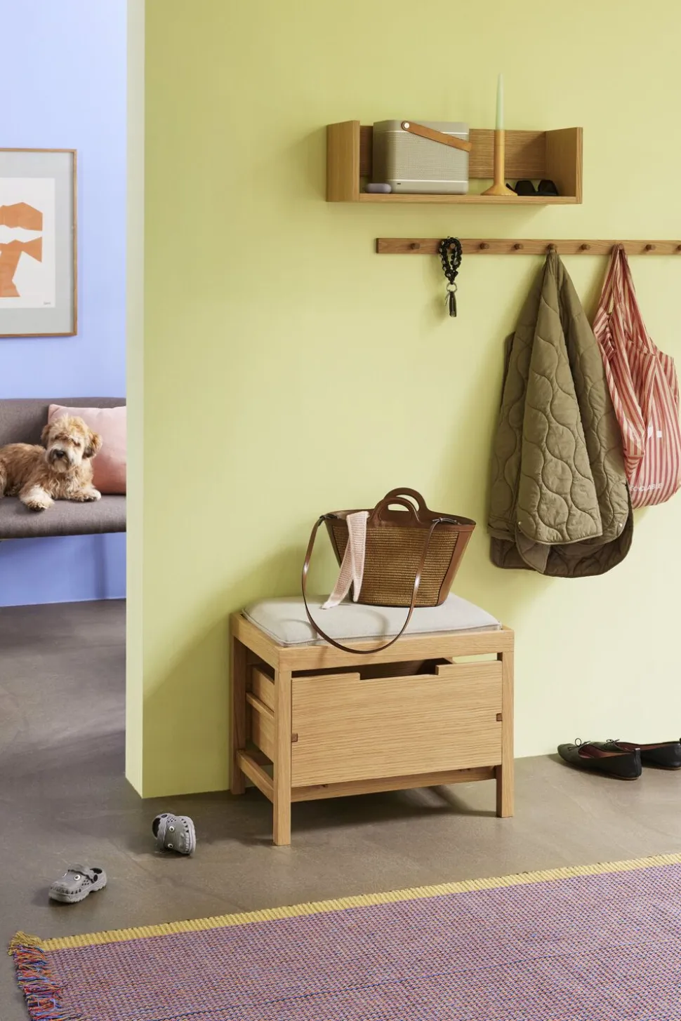 Oplev Bifi Bænken, en elegant ny tilføjelse til din bolig. Dette produkt kombinerer praktisk opbevaring med stil, idet det indeholder et smart opbevaringsrum under sædet, der er polstret for øget komfort. Denne bænk er ikke kun et møbel, men også en funktionel løsning til opbevaring af sko, hatte og tørklæder, så din entré forbliver ryddelig og indbydende. Bifi Bænken er det ideelle valg for ethvert hjem, der ønsker at tilføje et elegant og funktionelt møbel til entréen.