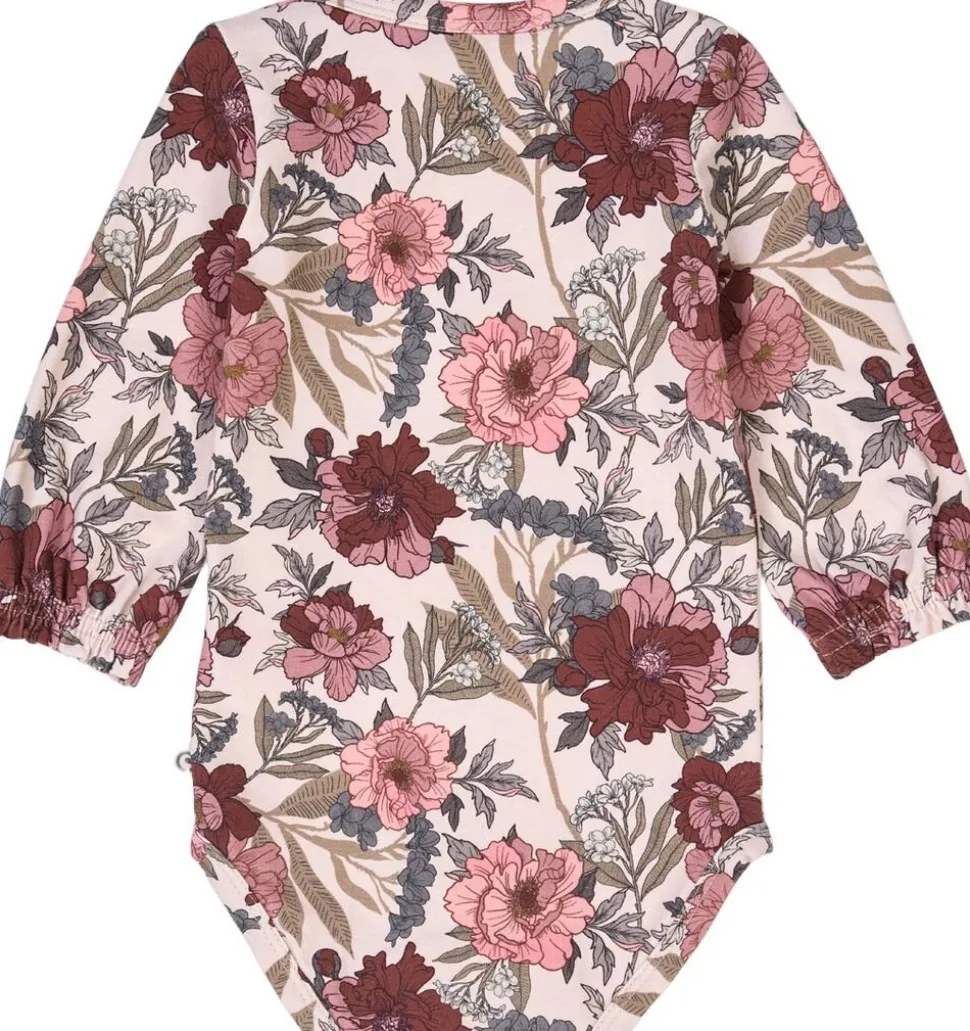 Skøn body med lange ærmer og sød og dekorative flæser ved ærmeafslutning. Der er elastik i ærmeafslutningen. Bodyen åbnes i halsåbningen og i bunden med tryk knapper. Fremstillet i en dejlig blød og strækbar single jersey med elastan for at opnå højere komfort og længere holdbarhed. (GOTS Organic Certified by Ecocert Greenlife Lic. No. 151714). Produktet er GOTS organic- certificeret, hvilket betyder at bomulden er certificeret økologisk, og at der i alle andre processer som farvning, strikning og syning er taget de strengeste hensyn til miljøet. GOTS er internationalt anerkendt som den førende standard for forarbejdning af tekstiler af økologisk bomuld. Derudover tages der også hensyn til arbejdsforholdene, hos dem der producerer tøjet. Økologisk bomuld 95%, Elastan 5%