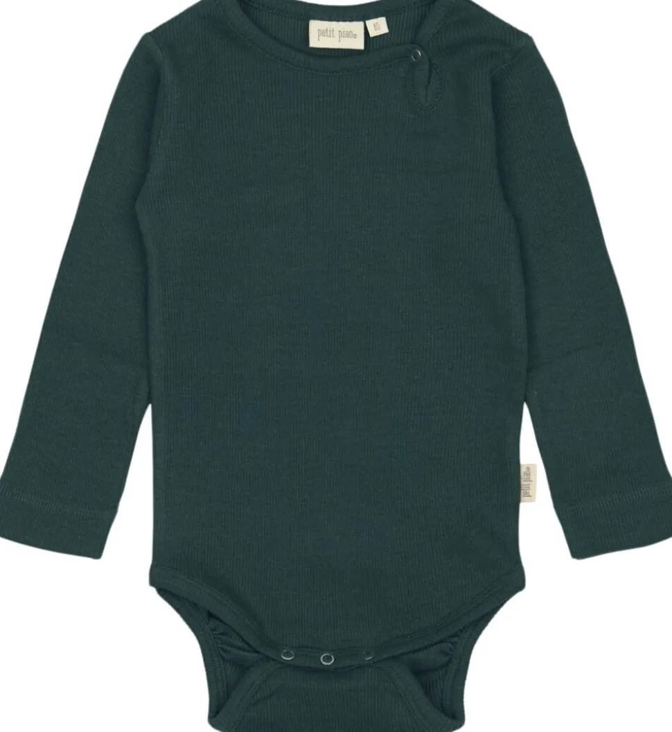 Langærmet body lavet i vores klassiske ribkvalitet. I venstre side af halsåbningen har vi vores signaturåbning med en trykknap til nem åbning. Bodyen lukkes forneden med tre trykknapper, til nem bleskift. Materialet er blødt og meget strækbart, lavet til komfort og leg. Produceret i Indien.