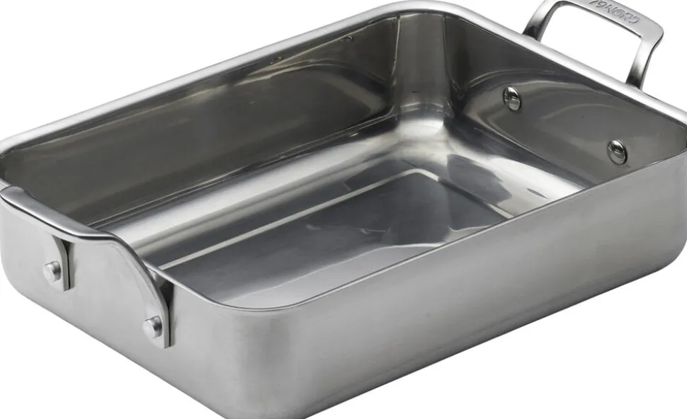 Bradepande af høj kvalitet i rustfrit stål med en tyk bund på 1 mm. De opretstående håndtag sikrer, at bradepanden er let at tage fat i og håndtere. Bradepanden måler 34,5 x 20 x 9 cm inkl. håndtag og er perfekt til mindre mængder mad.