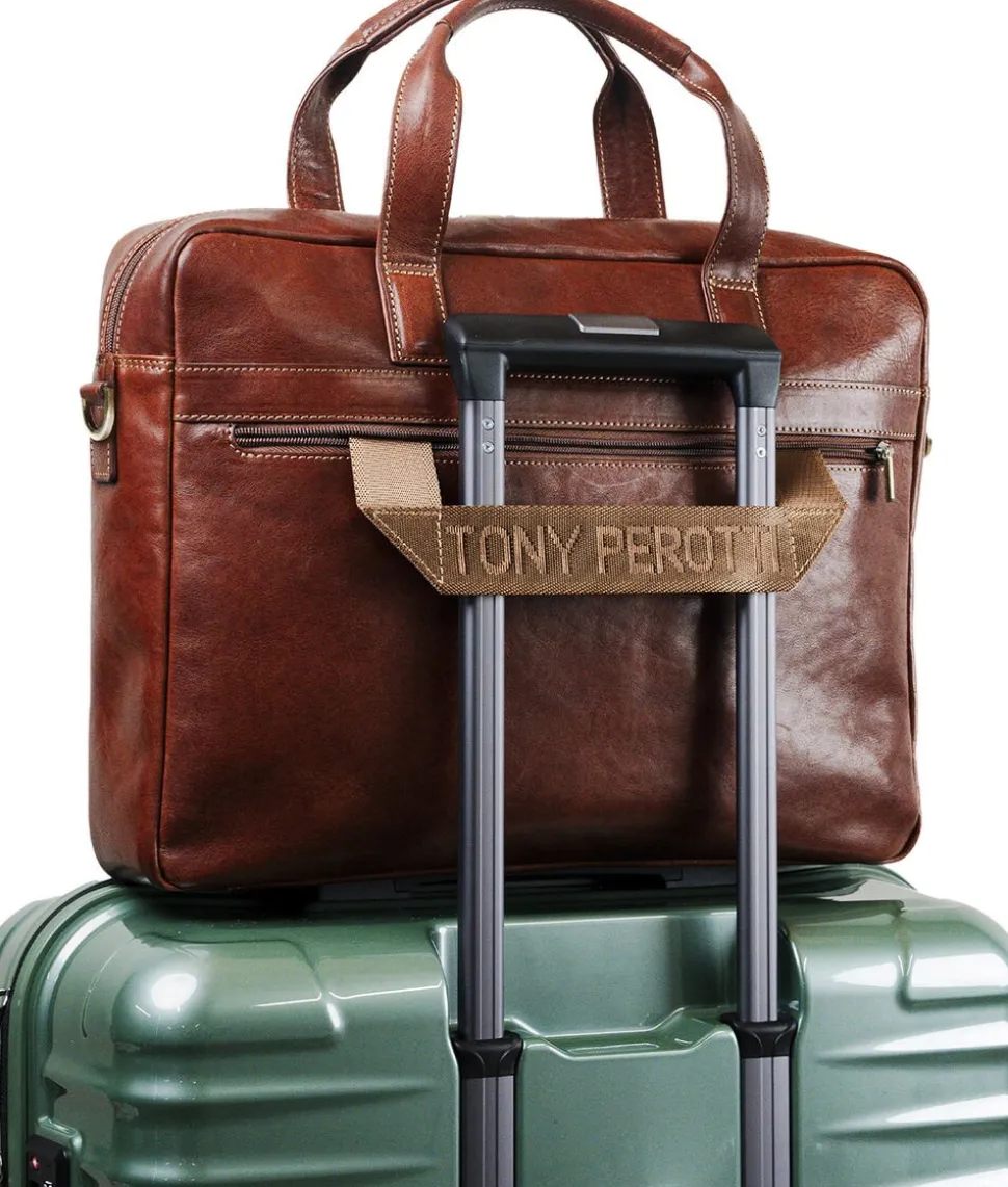 Denne tidløse, minimalistiske computertaske er designet til daglig brug. Tasken har et neoprenrum, der passer til en 15-tommers bærbar, tablet og dokumenter. Foran er der en lynlåslomme med lås, hvor du kan opbevare mobiltelefon, kabler, kuglepenne, nøgler og andre daglige nødvendigheder. Tasken kan bæres i hånden eller komfortabelt over skulderen med den justerbare og aftagelige skulderrem. Derudover har tasken en funktion til nem fastgørelse på en trolley. Det stilfulde og autentiske italienske læder, som er kendetegnende for Tony Perotti, er fremstillet på en miljøvenlig måde.