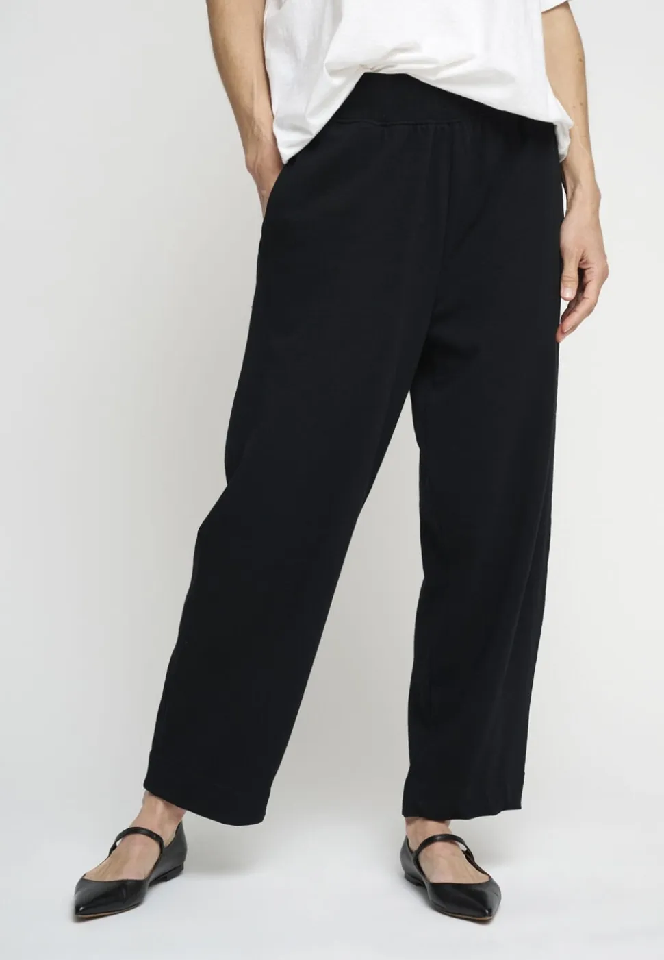 Sorte barrel-sweatpants i afslappet pasform med en diskret mønstret væ