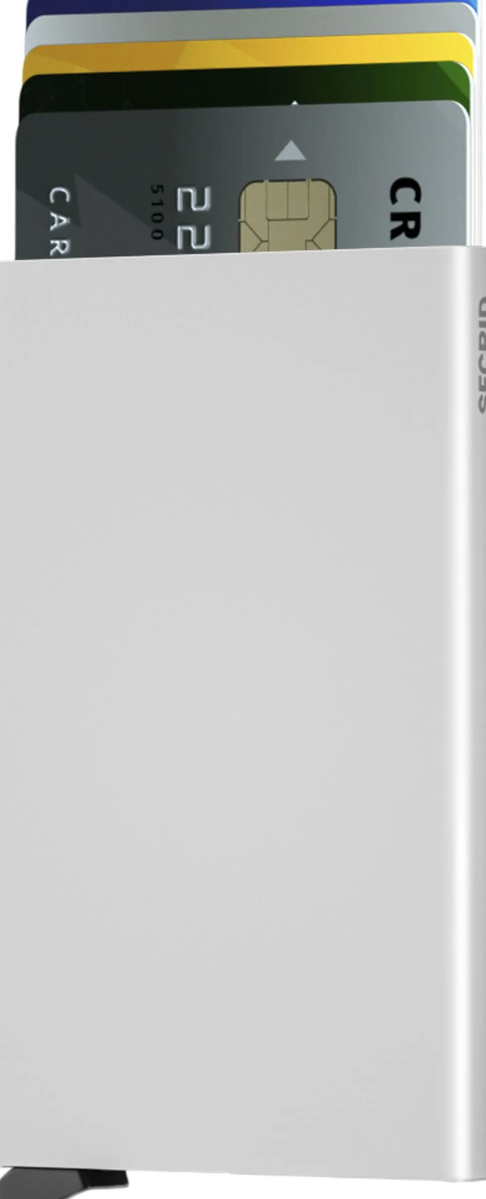 Kreditkortholder fra Secrid med RFID-beskyttelse. Kortholderen beskytter dine kreditkort, som hurtigt skydes ud ved et enkelt klik i bunden. Kortholderen har nem flip up, som kan rumme fem kort.