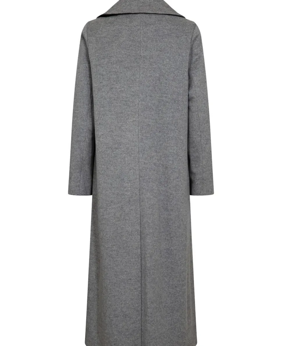 Lang frakke i uldblanding med ekstra stor revers og sidelommer. Klassisk design med knaplukning foran. Composition: 85% Wool, 15% Cashmere.