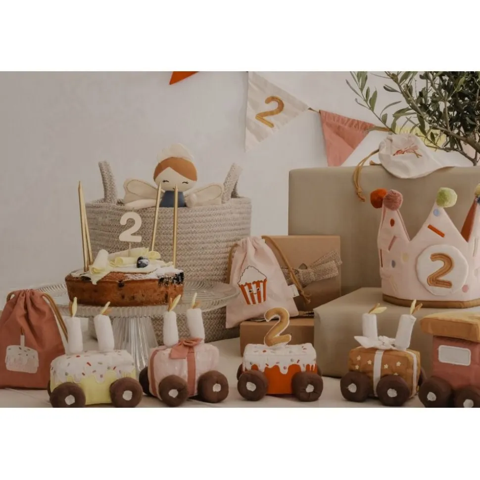 Birthday Train Rose Mix fra Fabelab skaber en varm og hyggelig stemning ved fødselsdagsbordet. Det lyserøde trætog er fyldt med søde figurer, en lysholder og udskiftelige tal fra 19. En smuk dekoration og en elsket tradition, der kan følge barnet år efter år. Anbefalet alder: 12m+ EU – legetøjssikkerhedsstandard CE