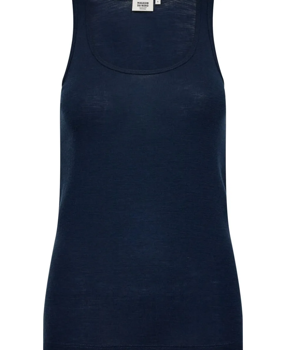 Top fra Magasin du Nord Collection i den blødeste kvalitet af 100% uld med RWS- og OEKO-TEX® STANDARD 100-certificering. Toppen er enkel i modellen med brede skulderstropper, en smal ribkant i den runde halsudskæring samt en komfortabel, tætsiddende pasform. En skøn top i den absolut lækreste kvalitet.