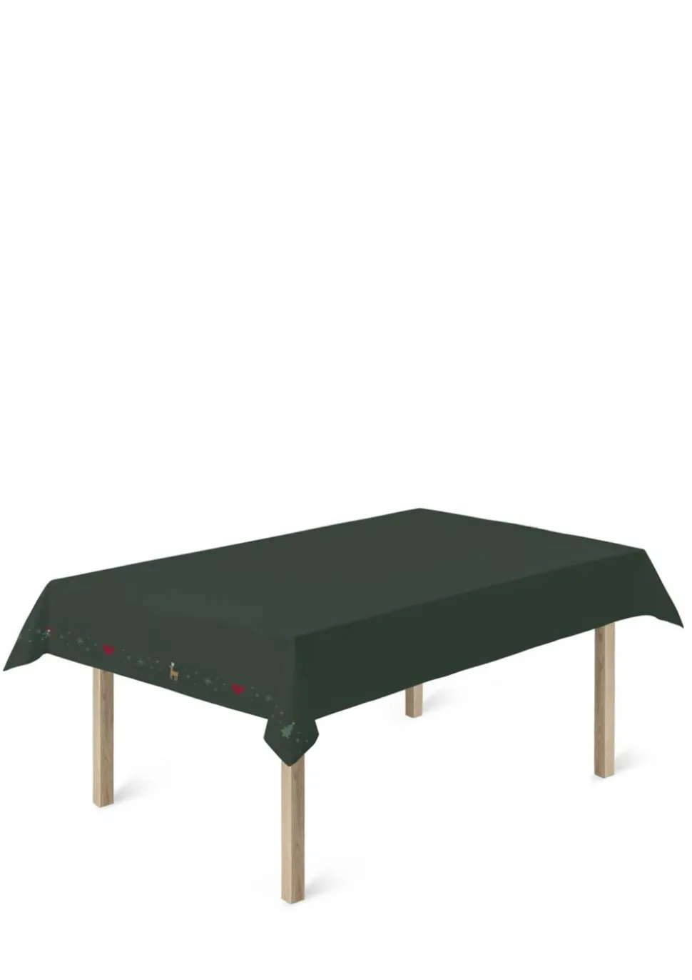 Mærk stemningen med JUNA Christmas Fable magiske juletekstiler til alle rum. Juleeventyr, fantasi og humoristiske dekorationer med masser af cosy kant. Med JUNA Christmas Fable får du en serie af moderne tekstiler med broderede motiver, der både æstetisk og legende forankrer og fornyer julens helt særlige stemning gennem et magisk juleunivers fuld af traditioner, hygge og personlighed. Tænk på en komplet og fuldstændig gennemført julekollektion af certificerede tekstiler til både dit køkken og resten af hjemmet. De dekorative julesokker på trappen fyldt op med dagens kalendergaver. Duftene fra køkkenet, der blander sig med hjertevarme forventninger og kærlige minder om en hyggelig aften i stuen. Den ikoniske juleborddækning, der løfter stemningen og får både børn og voksne til at glædes sammen. Og forestil dig så det hele tilsat nærmest karikerede klassiske broderier, der fortæller endnu flere historier end de tråde, de er syet med. Tryllebunden misteltensmagi, skitseagtige juletræer, nuttede rensdyr, ikoniske julehjerter og fluffy julestjerner. Alle skabt med masser af glimt i øjet i en sød og bevidst naivistisk stil, der ikke kan undgå at sende dit julehumør helt op til den skønneste stjernehimmel. JUNA Christmas Fable er skabt til at samle os omkring bordet, i køkkenet og også trække julestemningen med helt ind på puden, inden vi rammer drømmeland. Fuld af små broderede detaljer. Spækket med de helt store julefølelser. Denne fortryllende JUNA Christmas Fable-dug i en dyb julegrøn farve er dekoreret med et fantastisk mix af broderede julemotiver ned langs siderne af dugen, så du ikke skjuler de søde dekorationer, når du dækker op med skåle og fade og alle dine andre julefavoritter på midten af bordet. Dugen måler 150×270 cm og kommer i et skønt mix af GRS-certificeret genanvendt bomuld, GRS-certificeret genanvendt polyester og en lille smule viskose, der gør stoffet ekstra lækkert. JUNA Christmas Fable-serien giver dig et bredt udvalg af certificerede juletekstiler til hele hjemmet, hvor du mærker julestemningen i hver eneste tråd, og som du kan glæde dig til at finde frem jul efter jul. En kærlighedserklæring til godt håndværk og dekorativt dansk design vævet sammen af store eventyr og små broderede detaljer skabt til at holde længe og blive elsket endnu længere. (GRS Certified by Control Union, 1026087)