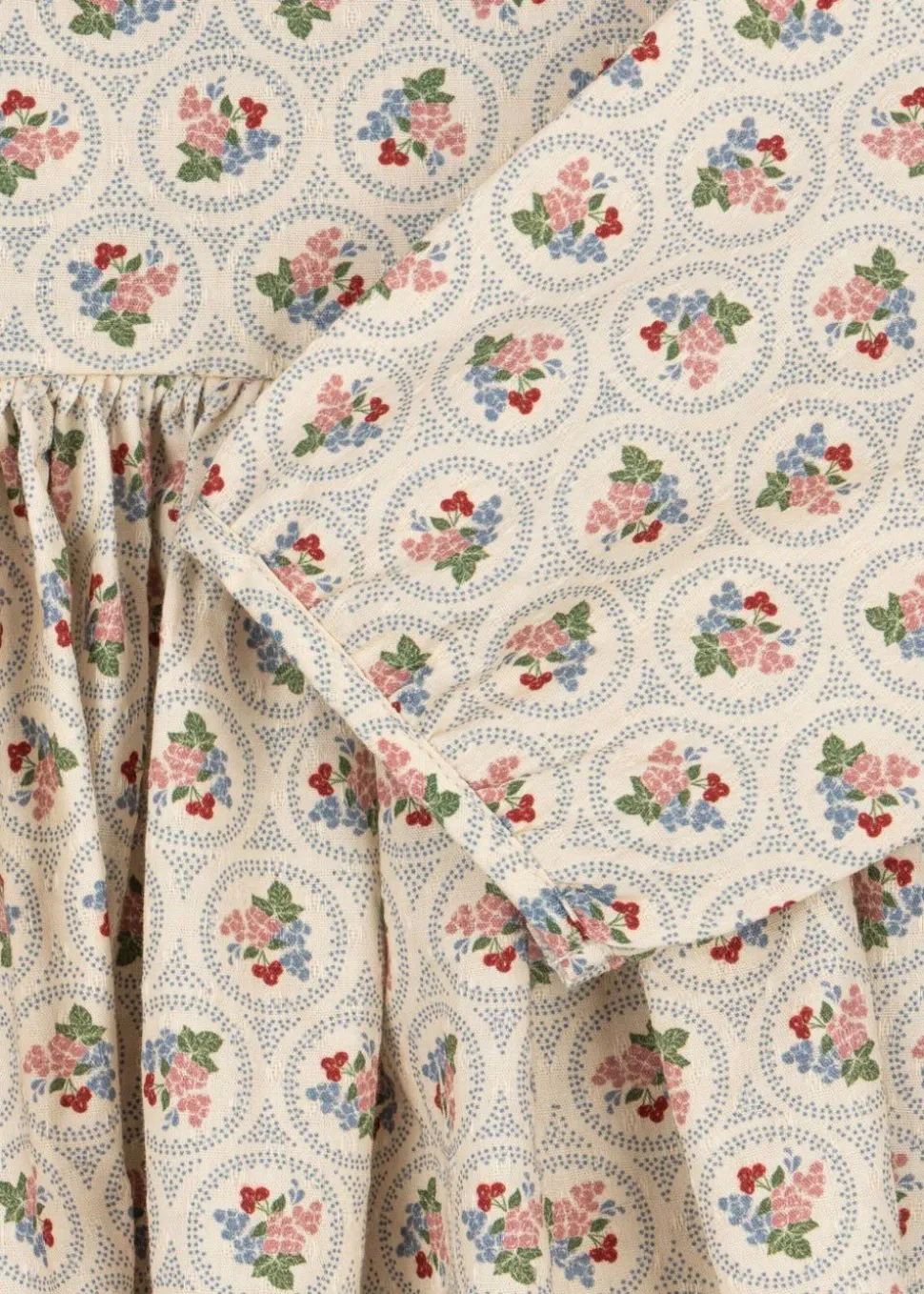 Soft organic cotton dress with frill details at the sleeves and bow details in the back.
