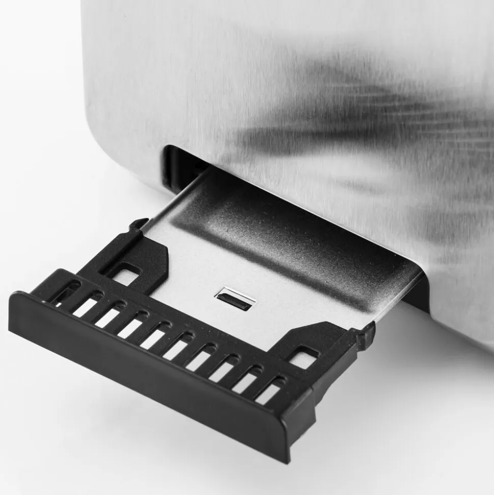 Denne elegante brødrister har et ydre hus i rustfrit stål højglanspoleret på de lange sider og børstet på de korte sider, og det skaber en luksuriøs fornemmelse. Den har en pålidelig, gennemprøvet og slidstærk teknologi, som gør den til en kær favorit til morgenmaden. Det gennemtænkte design tager sig godt ud både midt på morgenbordet og diskret gemt væk i hjørnet på køkkenbordet. Denne brødrister kan klare hyppig og langvarig brug samtidig med, at den kompakte størrelse sparer både plads og støm i mindre husstande. Brødristeren Prime passer til to skiver brød og har to brede rum, der kan håndtere mange forskellige tykkelser og brødtyper. Foruden stopfunktion, optøningsfunktion, varmefunktion og 7 risteindstillinger er den også udstyret med high lift-funktionen, og det gør det nemt at få mindre skiver brød ud af risteren. Kabinettet i rustfrit stål og en udtagelig krummebakke sikrer, at brødristeren også er nem at rengøre. Effekt: 850 W.
