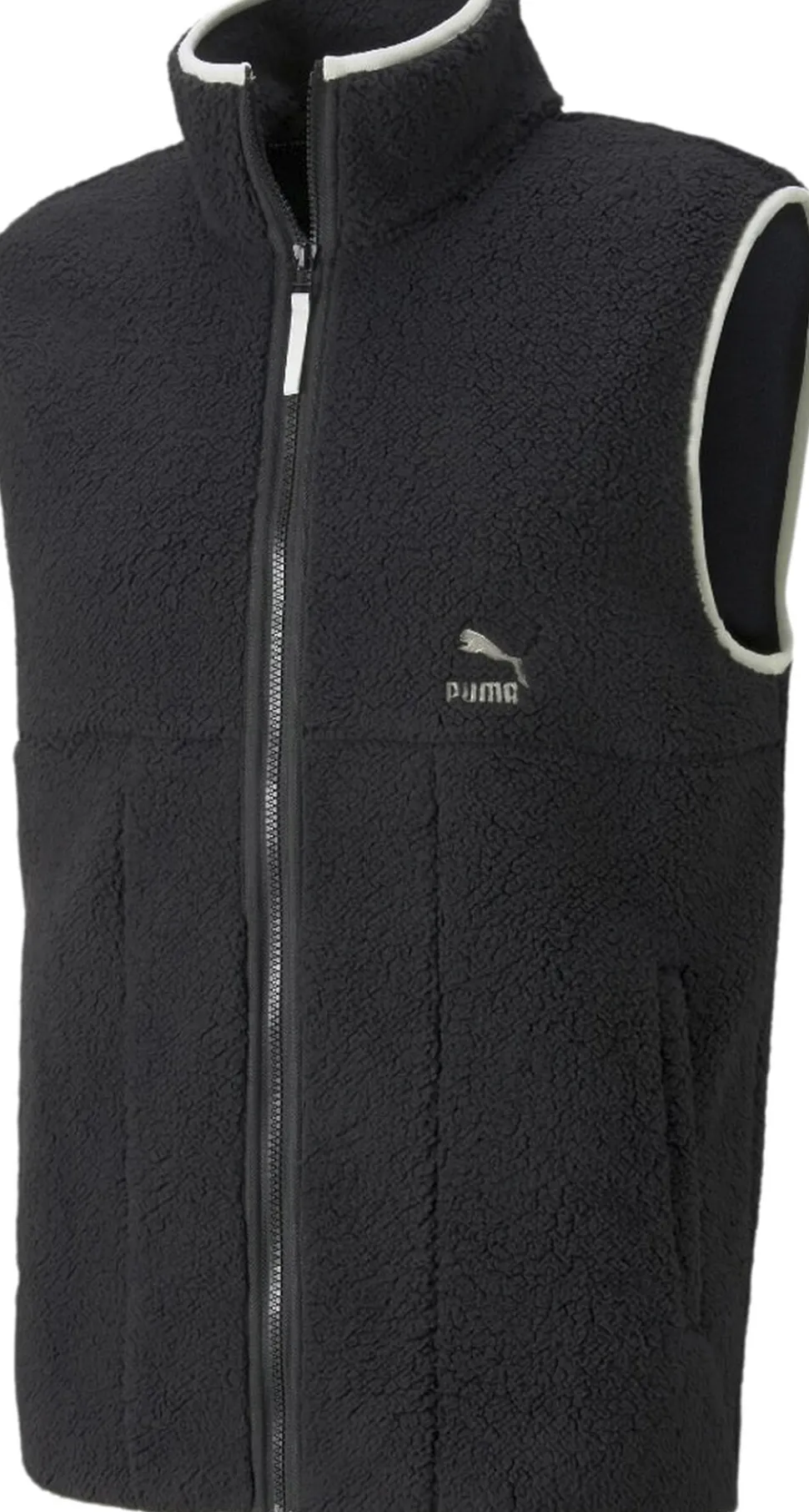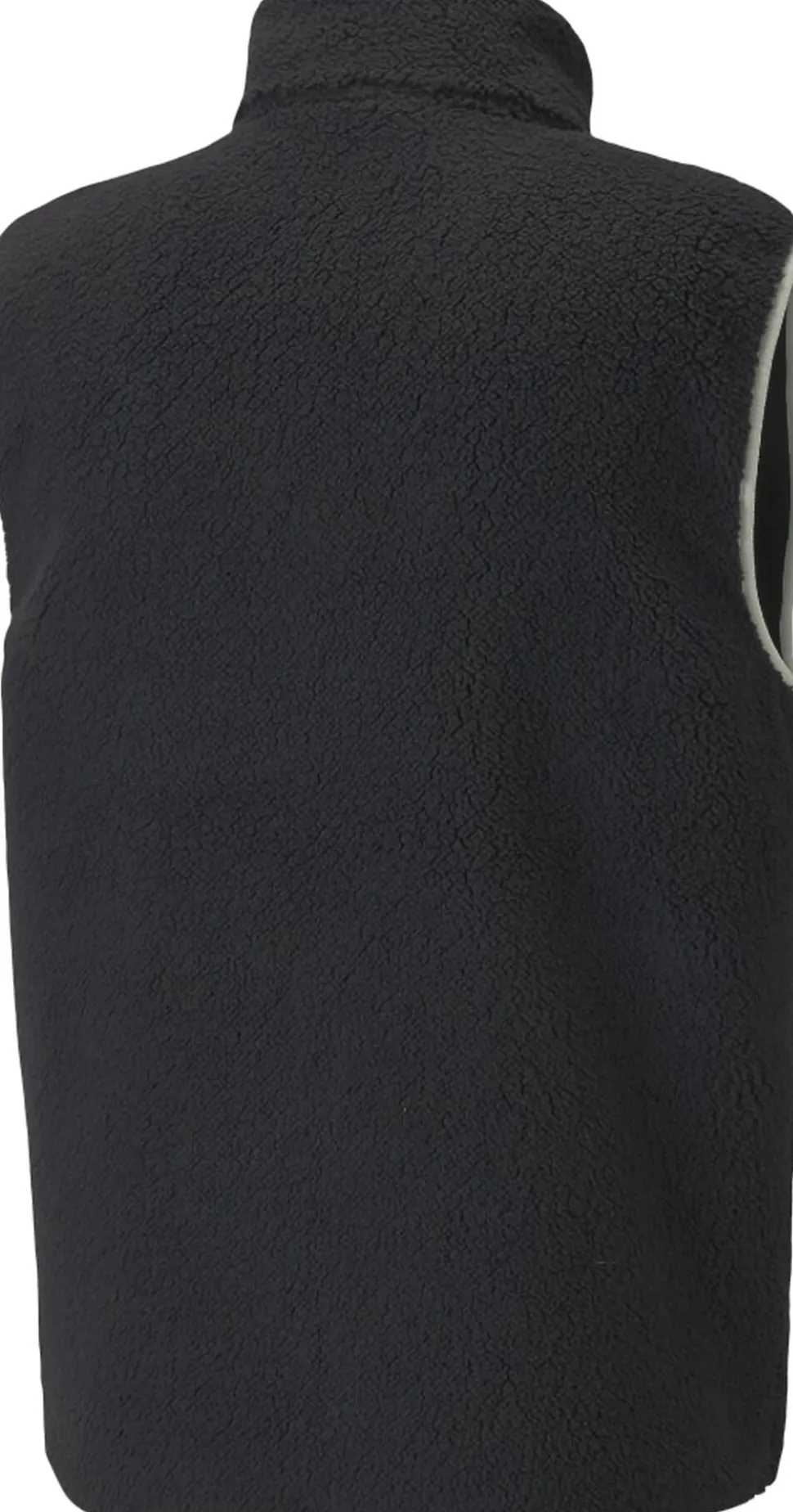 Puma Clsx Sherpa gilet fleece vest, med lille puma logo på venstre bryst. Denne fleece vest giver lidt varme til kroppen, så står du og mangler en let tynd vest, så er denne lækre fleece vest fra Puma lige noget.