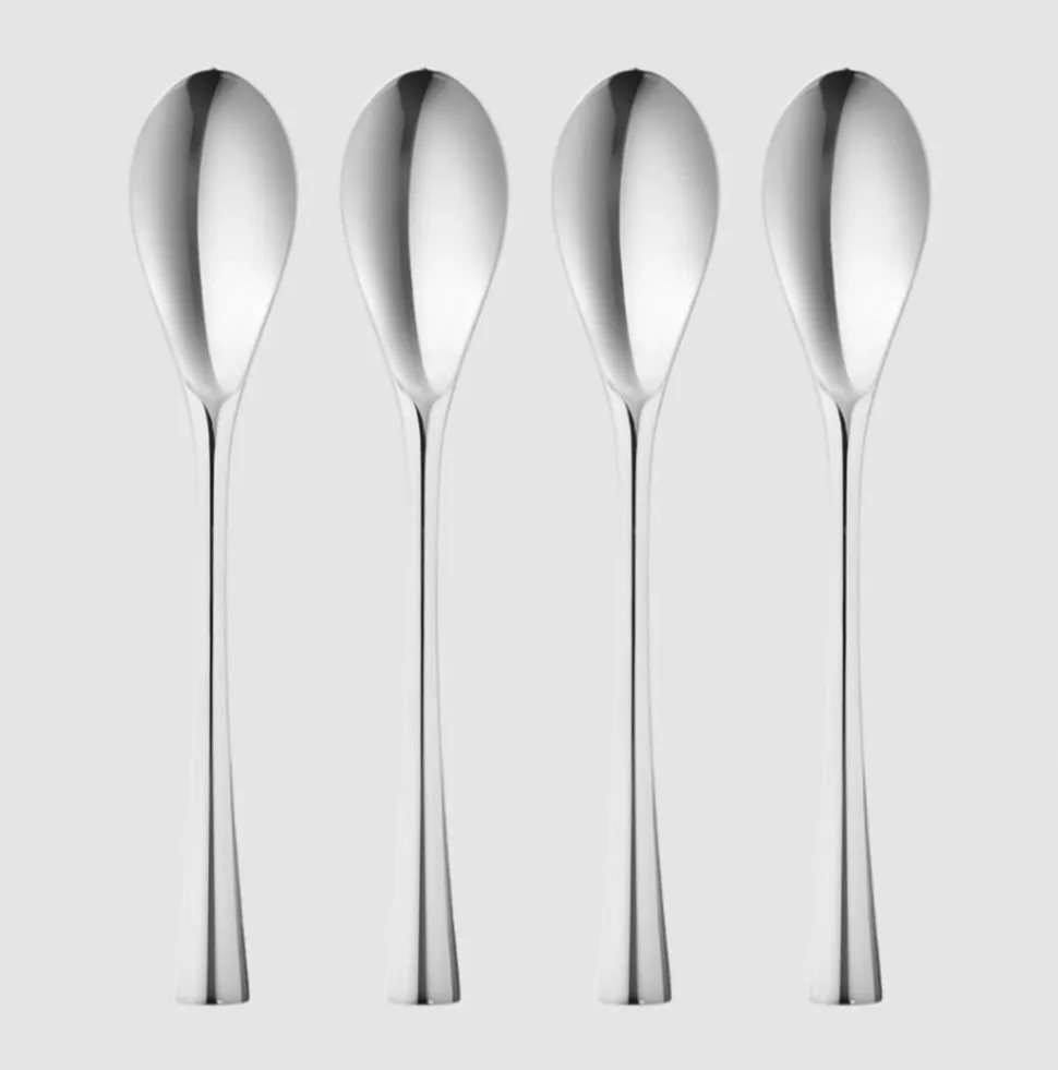 Dette sæt består af fire Cobra dessertskeer fra Georg Jensen. Dessertskeerne er fremstillet i blankt rustfrit stål og egner sig til opvaskemaskine.