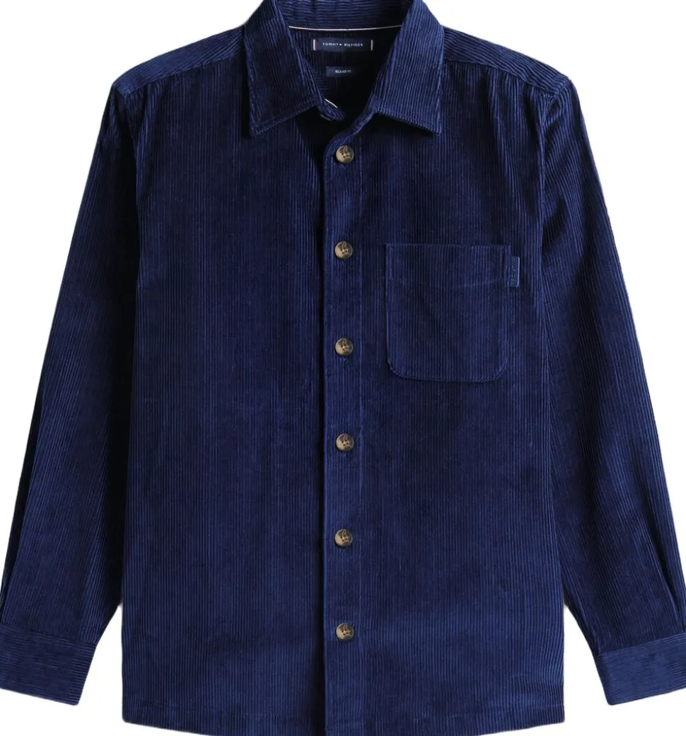 For a versatile layering piece, turn to this overshirt cut from textured corduroy in a relaxed fit with faux tortoiseshell button fastening. Highlights Pure cotton corduroy Faux tortoiseshell buttons Semi-spread collar Rounded one-button cuffs One chest patch pocket Tommy Hilfiger logo patch on pocket Tommy Hilfiger branding Tommy Hilfiger flag embroidery on cuff Shape & fit Overshirt Relaxed fit Slightly dropped shoulders Our model is 1.86m and wears size M Composition & care 100% cotton