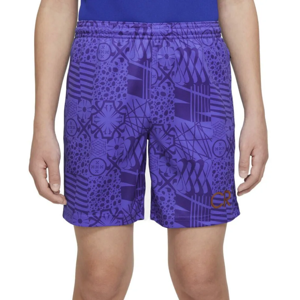 Cristiano Ronaldo er en af de største fodboldspillere nogensinde. Punktum. Føl dig som legenden selv med CR7-fodboldshortsene. De er fremstillet af svedtransporterende stof og hjælper dig med at holde dig tør og kølig, mens du træner dine færdigheder og skyder på mål. Desuden er det farverige print inspireret af fliser, der findes i Ronaldos hjemland, Portugal.