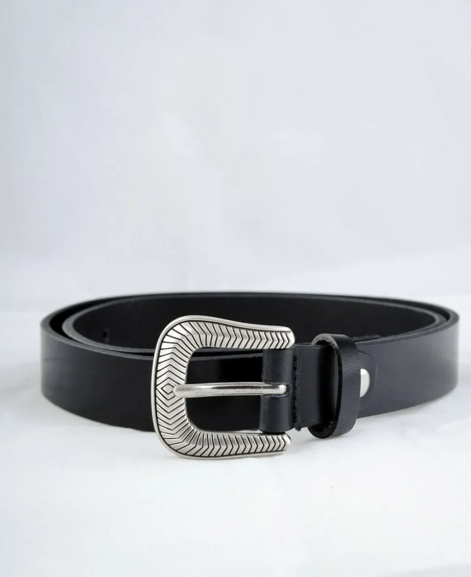 Et tidløst og detaljerigt western-inspireret bælte i 25 mm bredde. Bæltets spænde er designet med flotte detaljer i udformingen, mens remmen er produceret i ét lags vegetabilsk garvet læder fra Italien. Læderet er certificeret af Leather Working Group.