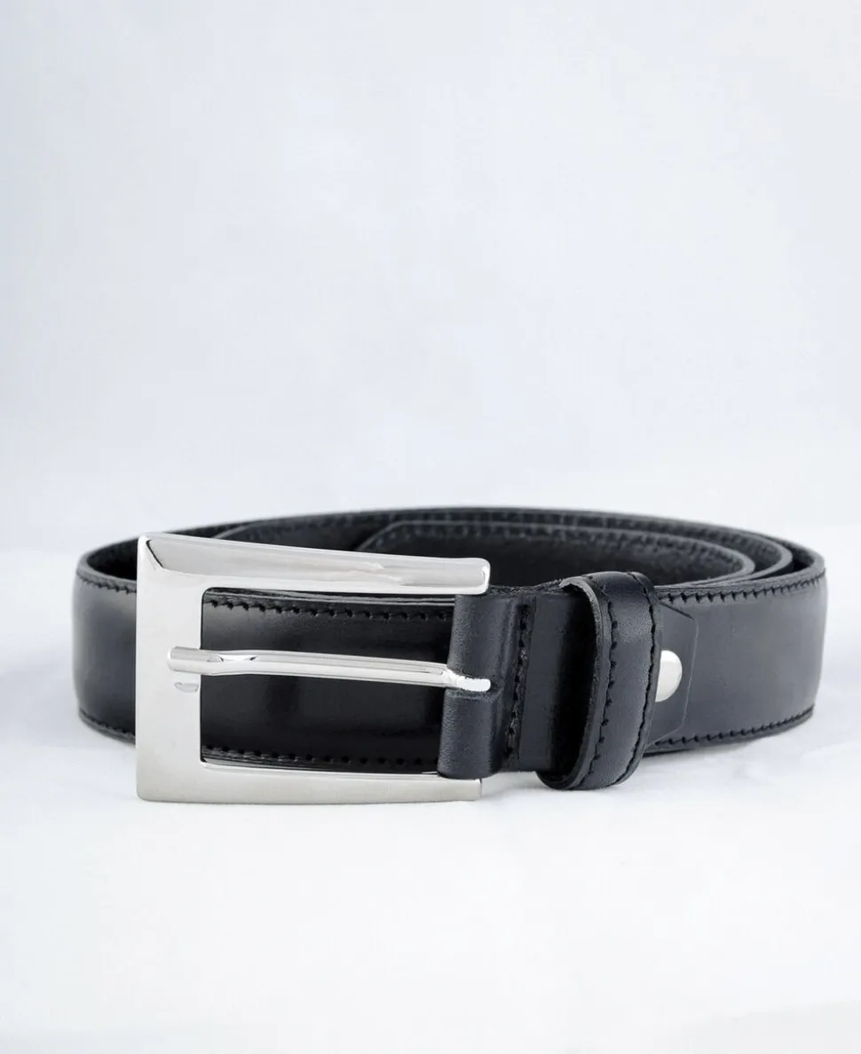 Et elegant bælte med chunky sølvfarvet spænde i 30 mm bredde. Bæltet er produceret i Danmark i to lag LWG-certificeret narvlæder og designet med kraftige stikninger langs kanterne på bæltet.