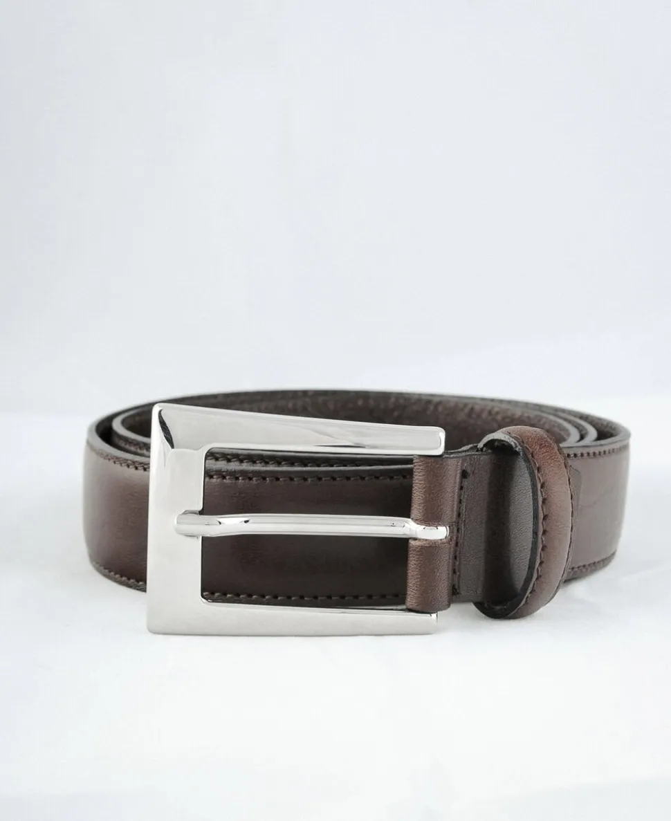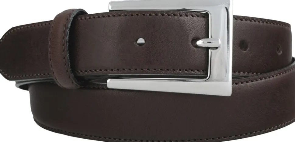 Et elegant bælte med chunky sølvfarvet spænde i 30 mm bredde. Bæltet er produceret i Danmark i to lag LWG-certificeret narvlæder og kommer med kraftige stikninger langs kanterne på bæltet.