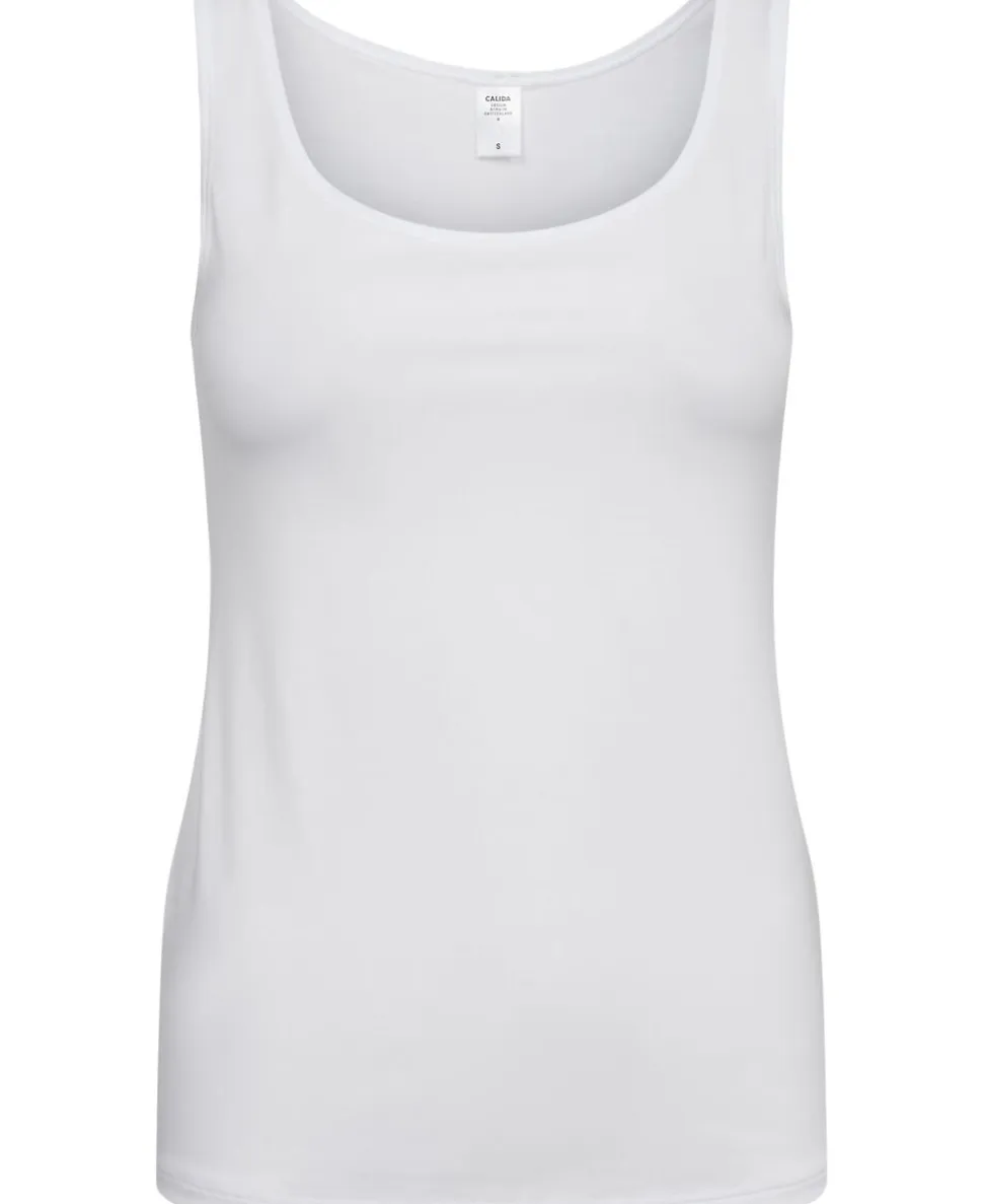 Top fra Calida i den blødeste bomuldskvalitet. Toppen er helt enkel i modellen med smalle kanter, brede skulderstropper samt en tætsiddende pasform. En enkel top i den blødeste kvalitet. Et absolut musthave i basisgarderoben.
