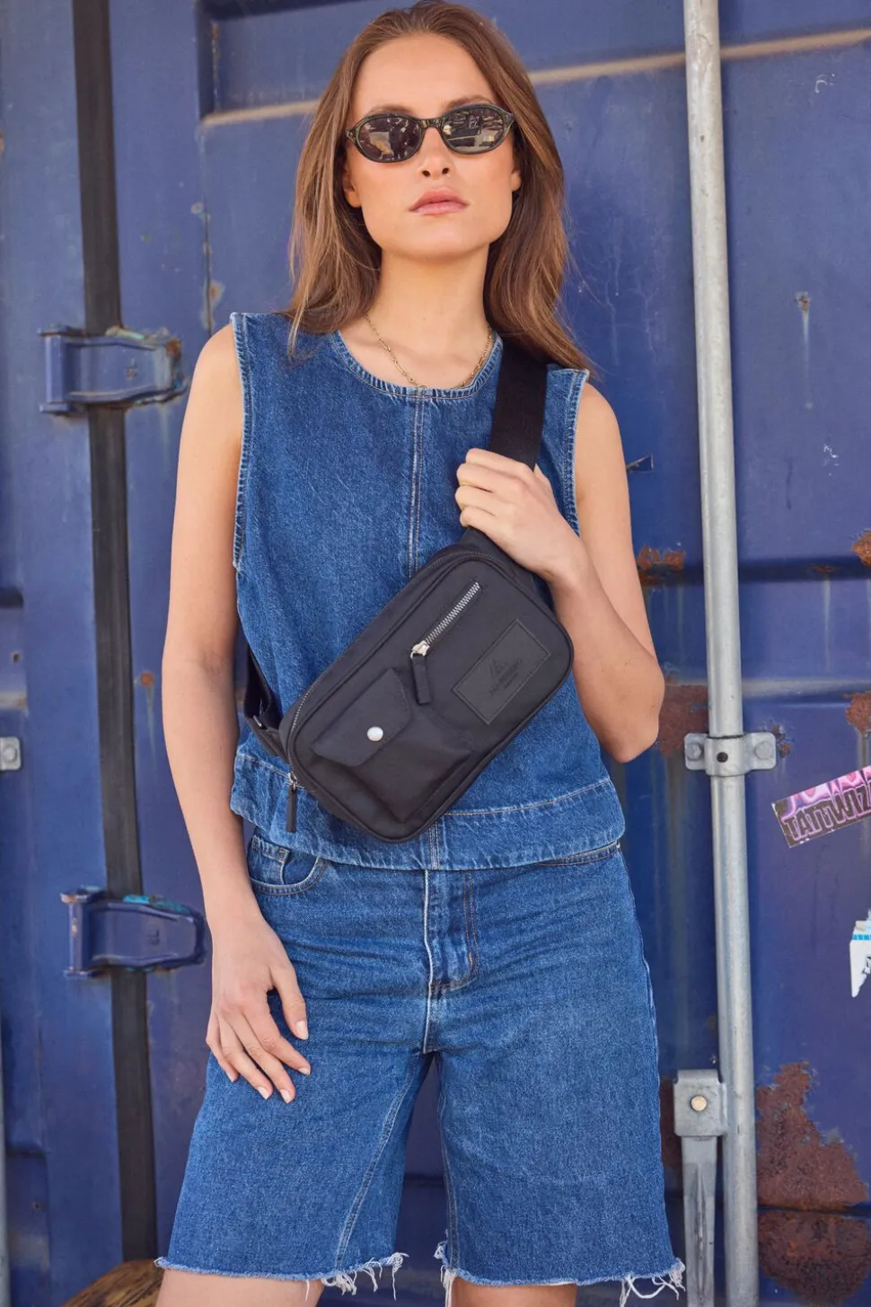 Darla Bum bag Monochrome fra Markberg er en praktisk crossbody taske som er produceret i 100% genanvendt polyester. Tasken er vandafvisende og lavet i et ekstra slidstærkt materiale. Tasken lukkes med lynlås og har en lille lomme og lynlåsdetaljer på fronten. Tasken har en lille lynlåslomme samt to små lommer indvendig. Markberg logoet på fronten er lavet i vegansk silikone, hvor der ikke er brugt animalske materialer. Tasken for er 100% genanvendt polyester. Mål: 23 cm x 14 cm x 7 cm