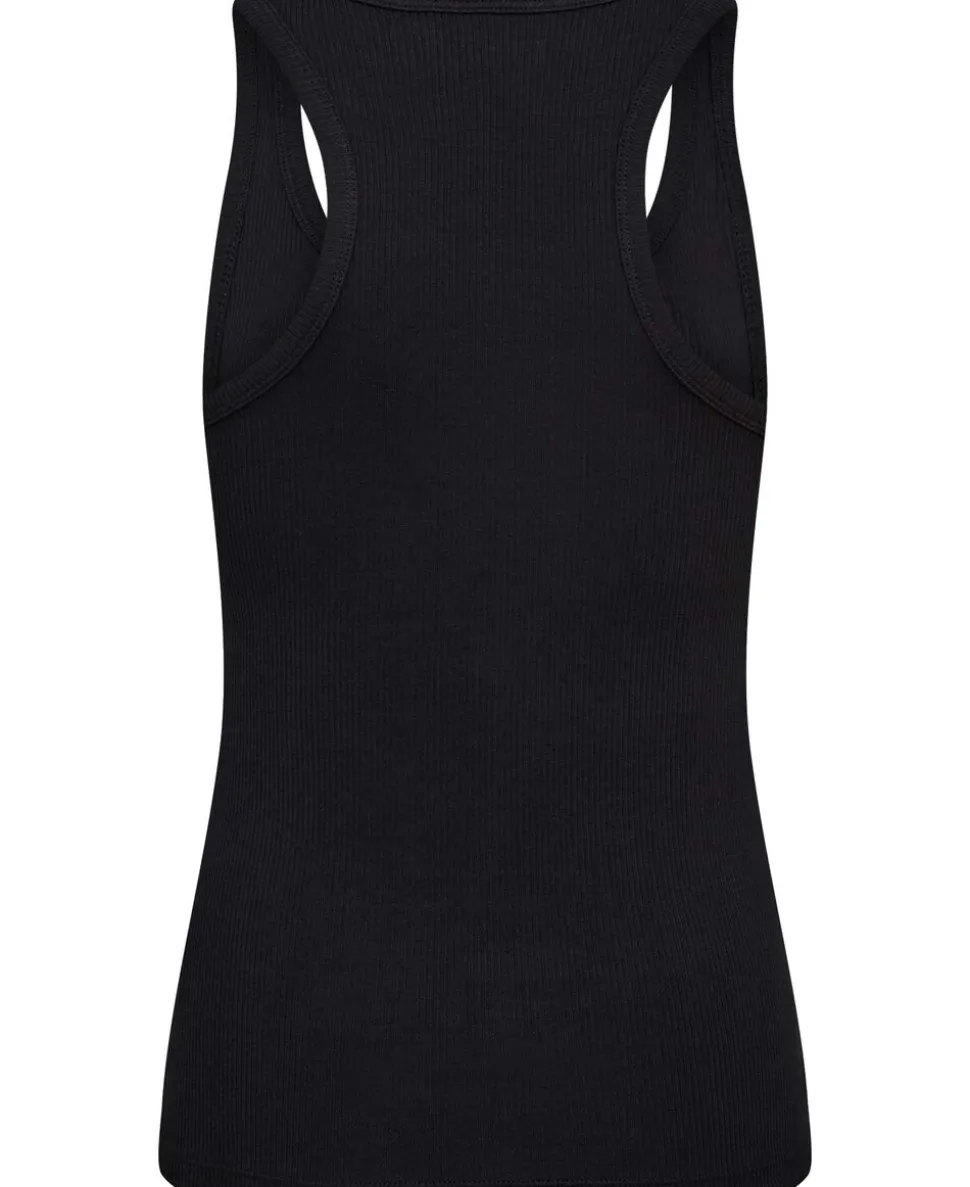 Tanktop fra Magasin du Nord Collection i den blødeste kvalitet af 93% økologisk bomuld med GOTS-certificering. Toppen har en ribstrikket struktur, der giver en skøn, tætsiddende pasform, en rund halsudskæring samt brede skulderstropper med bryderryg. En casual tanktop, der er et musthave i basisgarderoben.