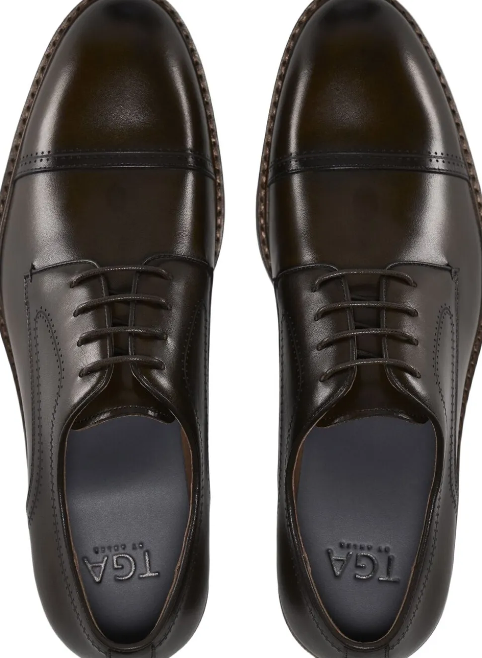 Halvbrogue derby-sko i kalveskind. Læderforing og fuld polstret kalveskindssål. Kjoleydersål i gummi