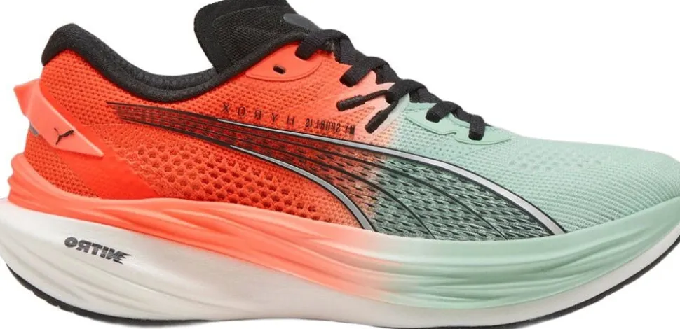 Puma Deviate Nitro 3 Hyrox AH25 Løbesko kombinerer banebrydende NITROFOAM-teknologi med en fuldlængde carbonfiber PWRPLATE, der sikrer eksplosiv fremdrift og let respons ved hver afsætning. Med en drop på 10 mm og en stabil sål er skoen ideel til neutral pronation og tilbyder optimal komfort under intense løb og HYROX-træning. Den holdbare PUMAGRIP-ydersål giver sikkert greb på alle underlag. Det markante PUMA x HYROX-design understreger din seriøse tilgang til sporten og gør denne sko til det oplagte valg for løbere, der vil have både power og stil.