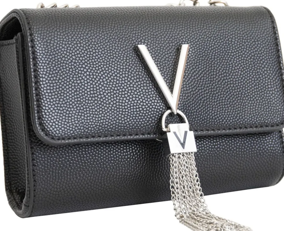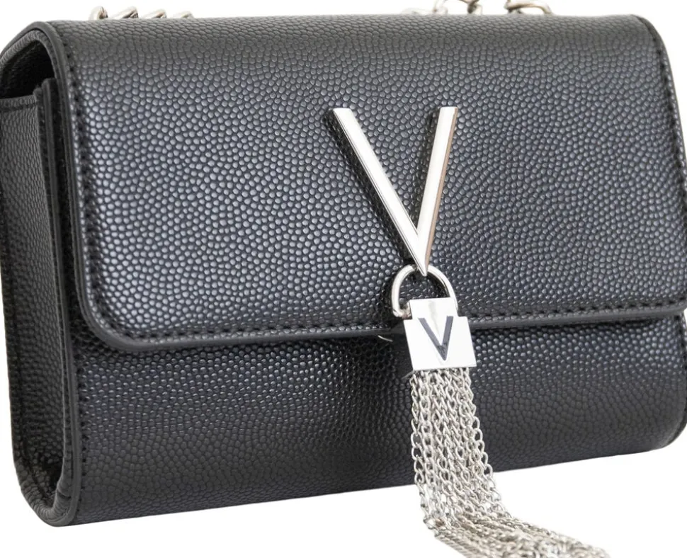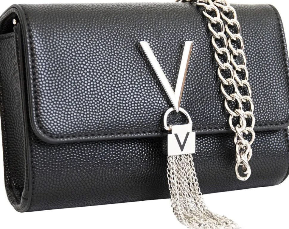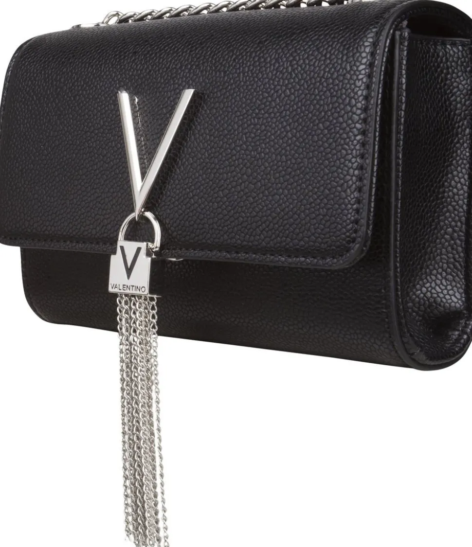 Cool lille håndtaske med elegant kæde vandfald og skjult spænde lukning i front. Klassisk kæde skulder rem.